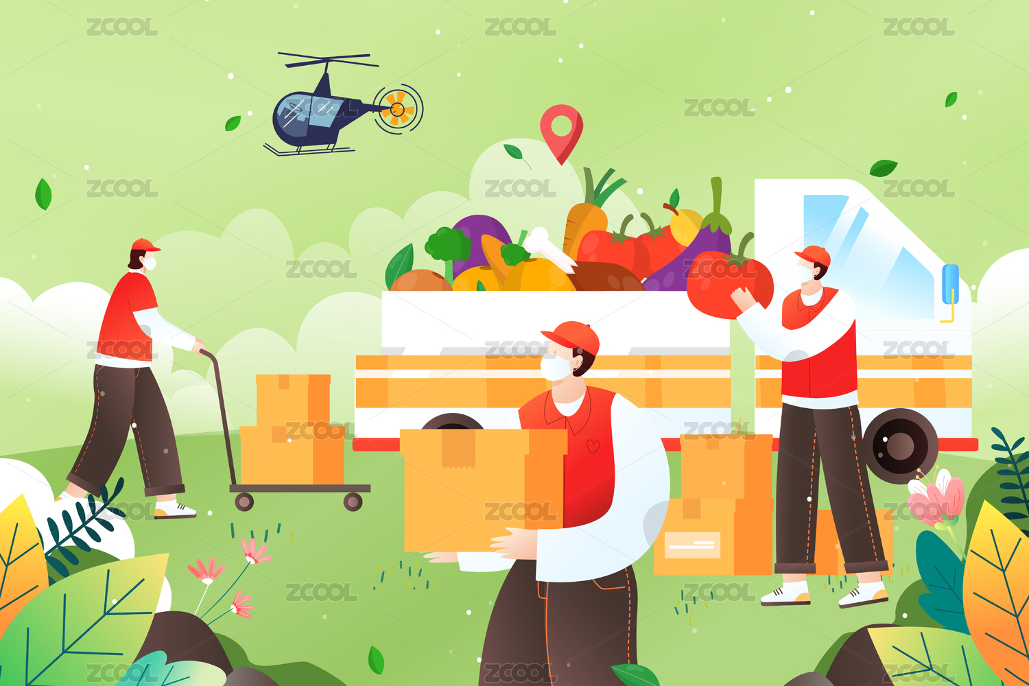 志愿者搬運(yùn)蔬菜矢量插畫(huà)