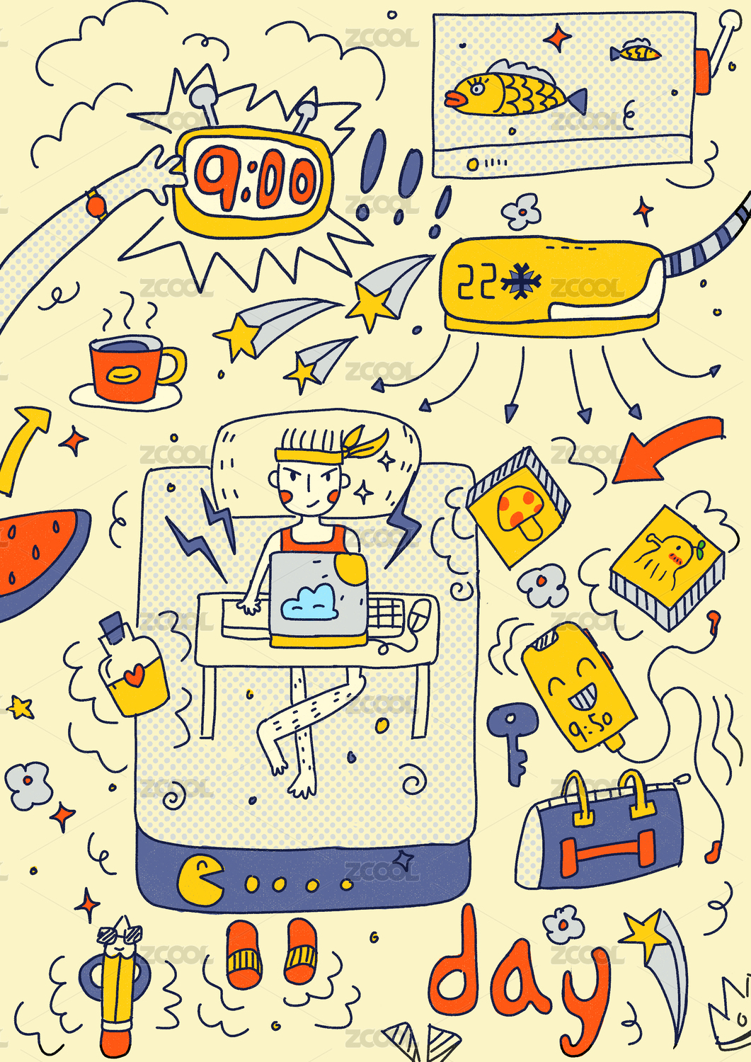 線條風簡約遠程辦公海報插畫元素