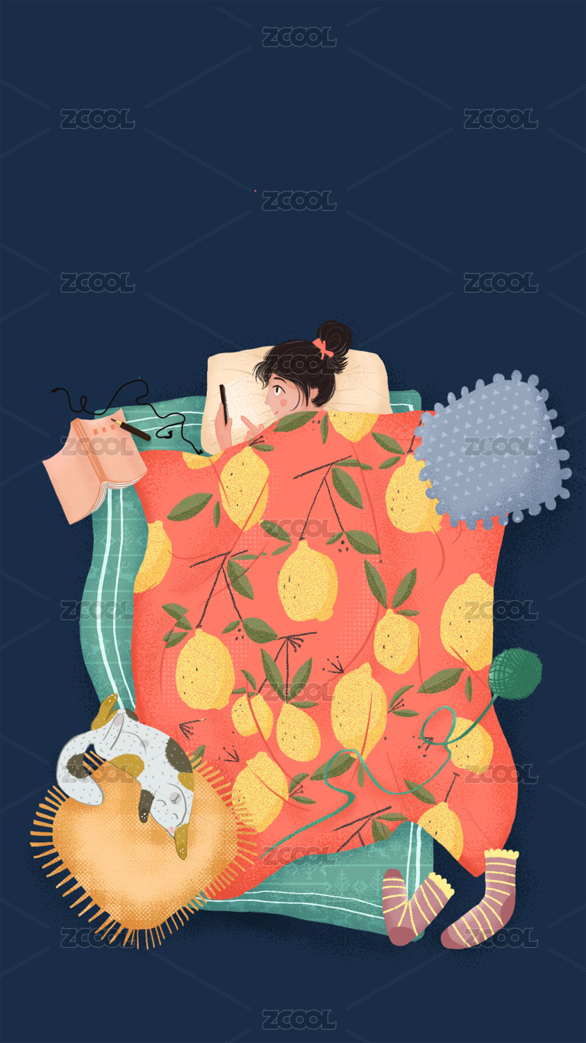 毫無睡意的女孩躺在床上刷手機(jī)
