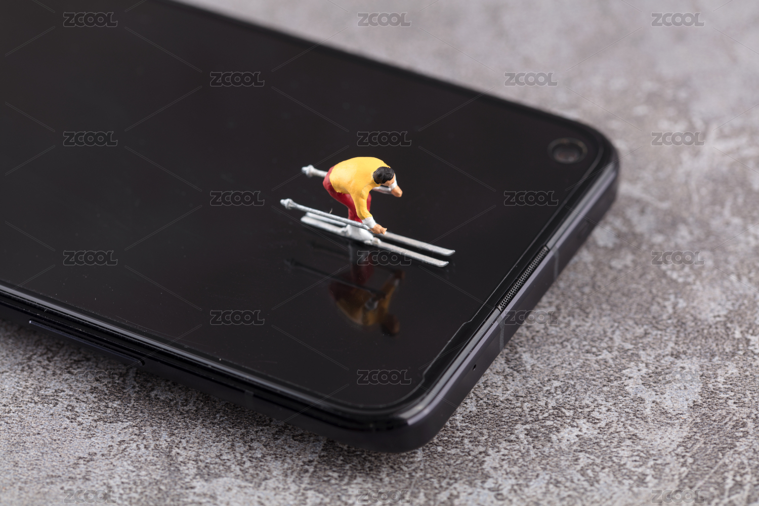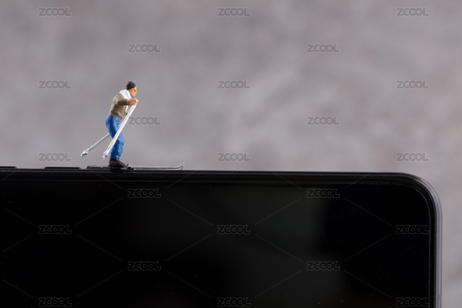 微縮創(chuàng)意手機(jī)上暢游的滑雪者