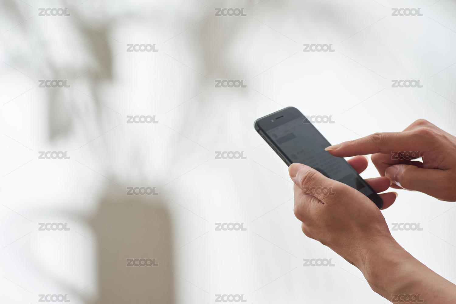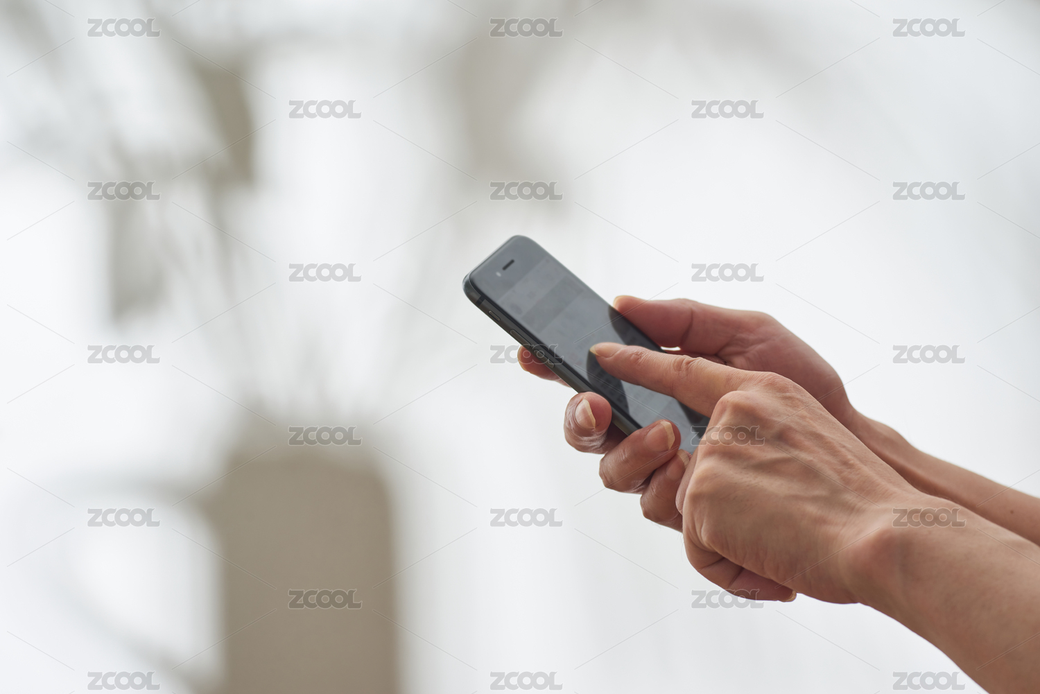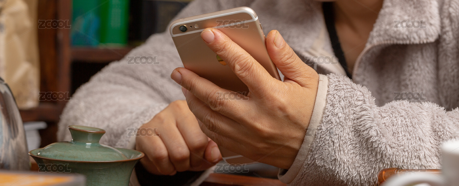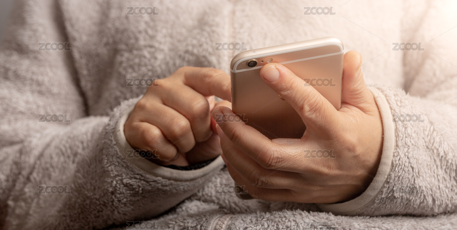 休閑時(shí)刷手機(jī)的手部特寫