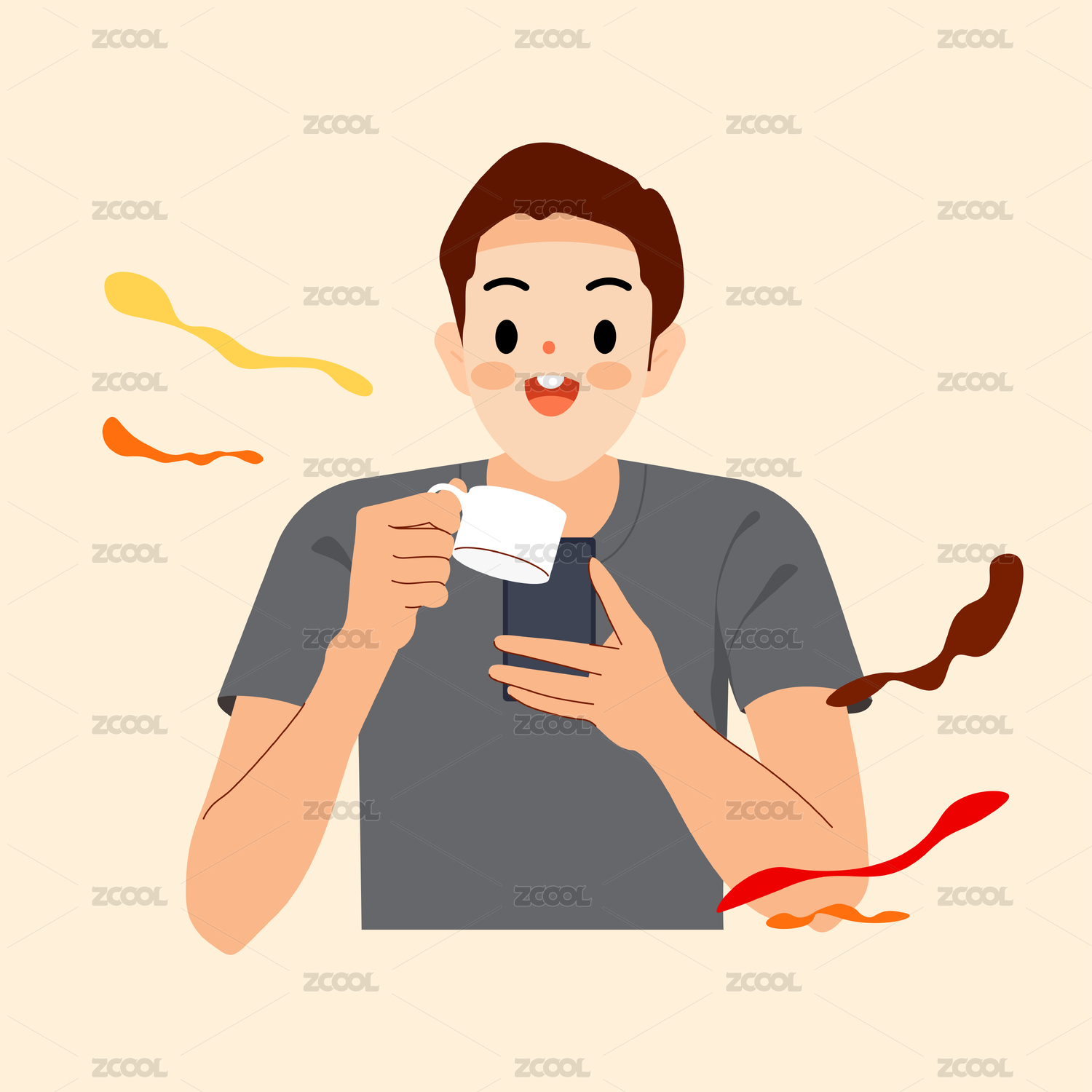 拿著咖啡杯刷著手機(jī)的男人