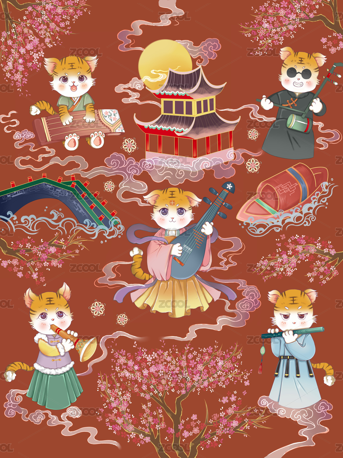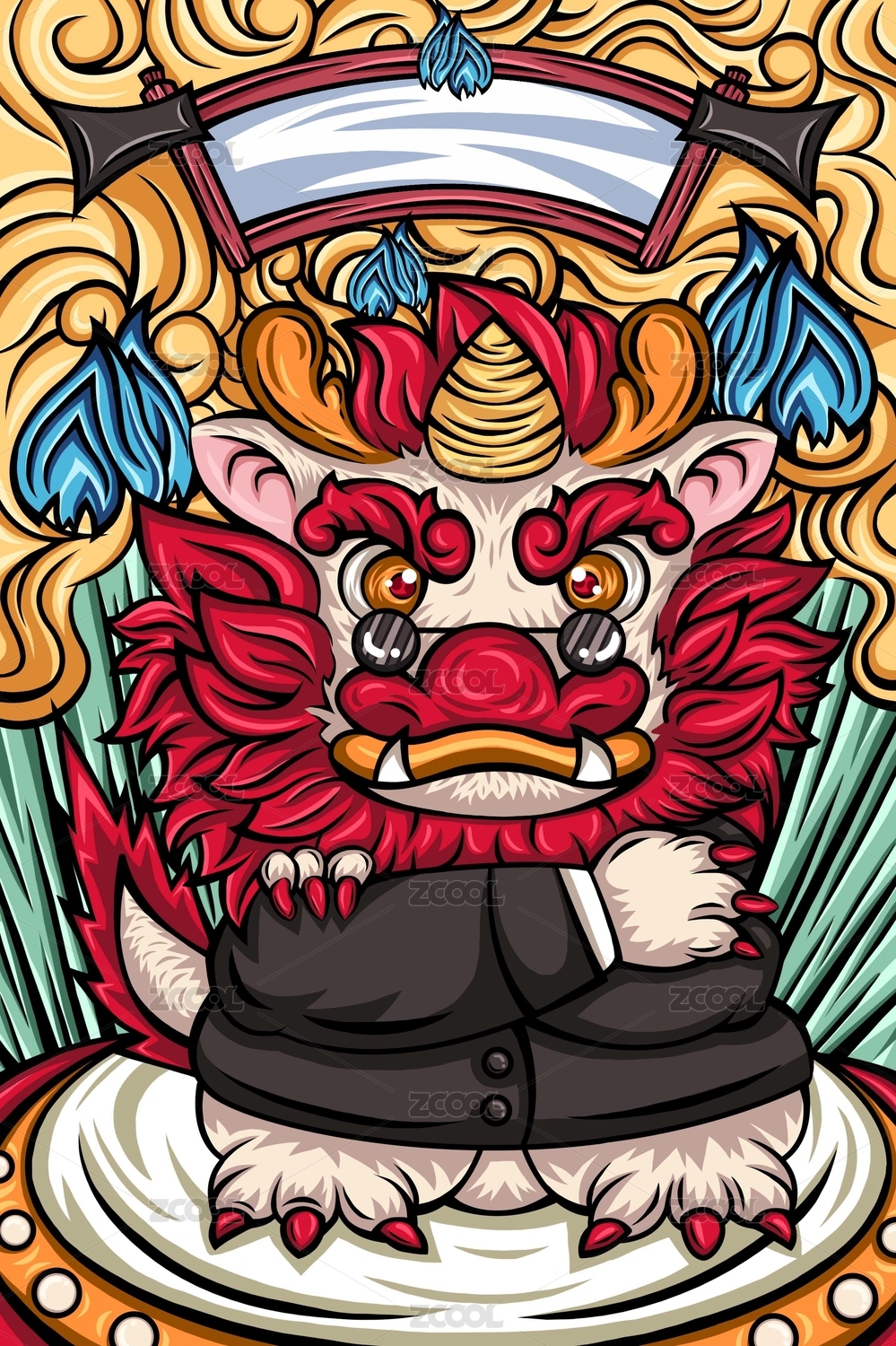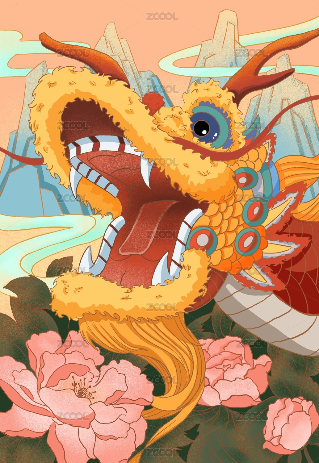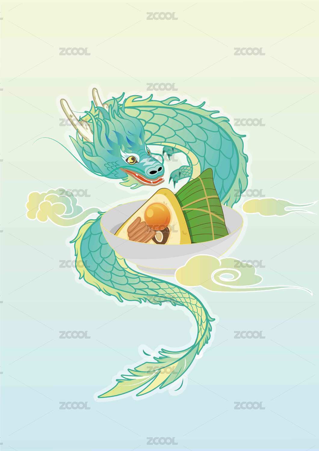 國朝插畫-龍圍繞粽子祥云繚繞的樣子