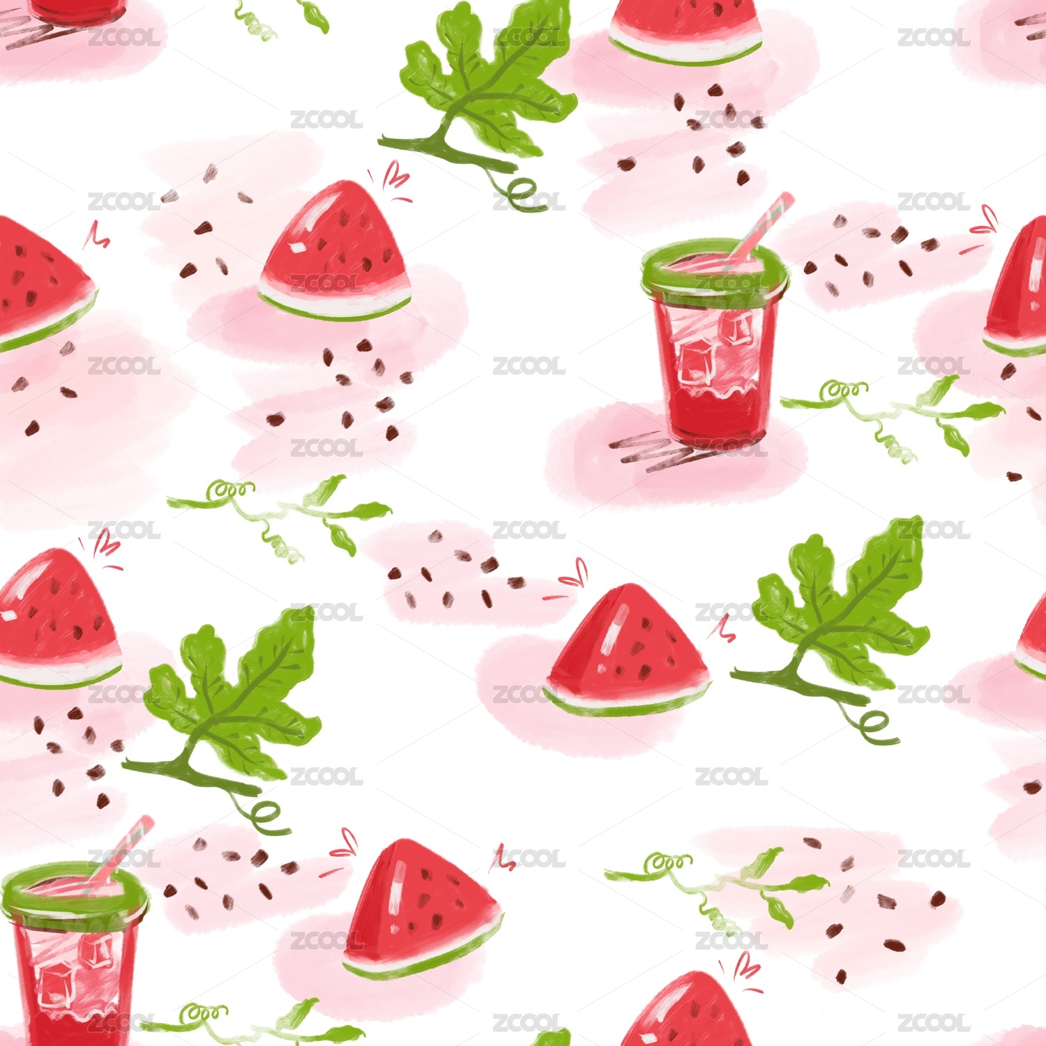 水彩手繪水果西瓜插畫家紡印花圖案設(shè)計(jì)
