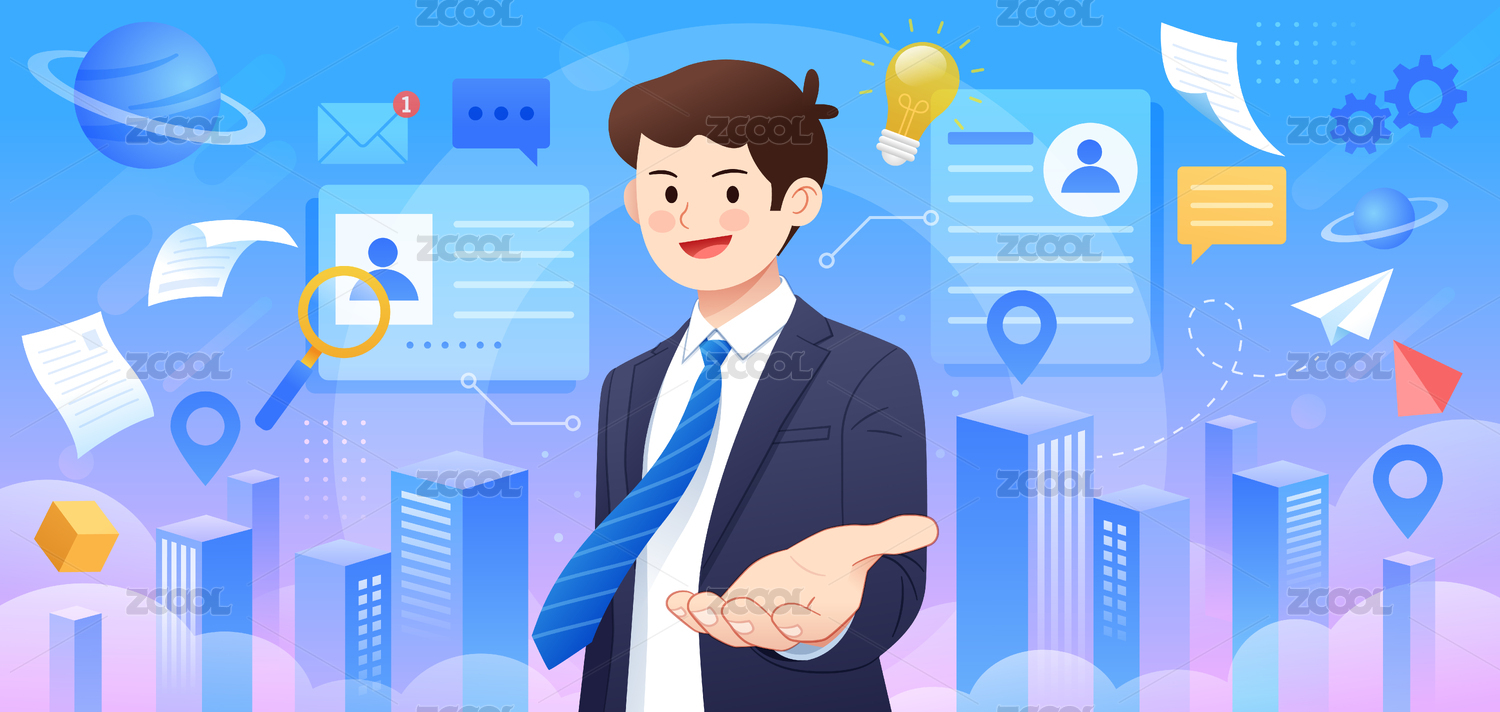 一個西裝男士伸手邀請招聘插畫