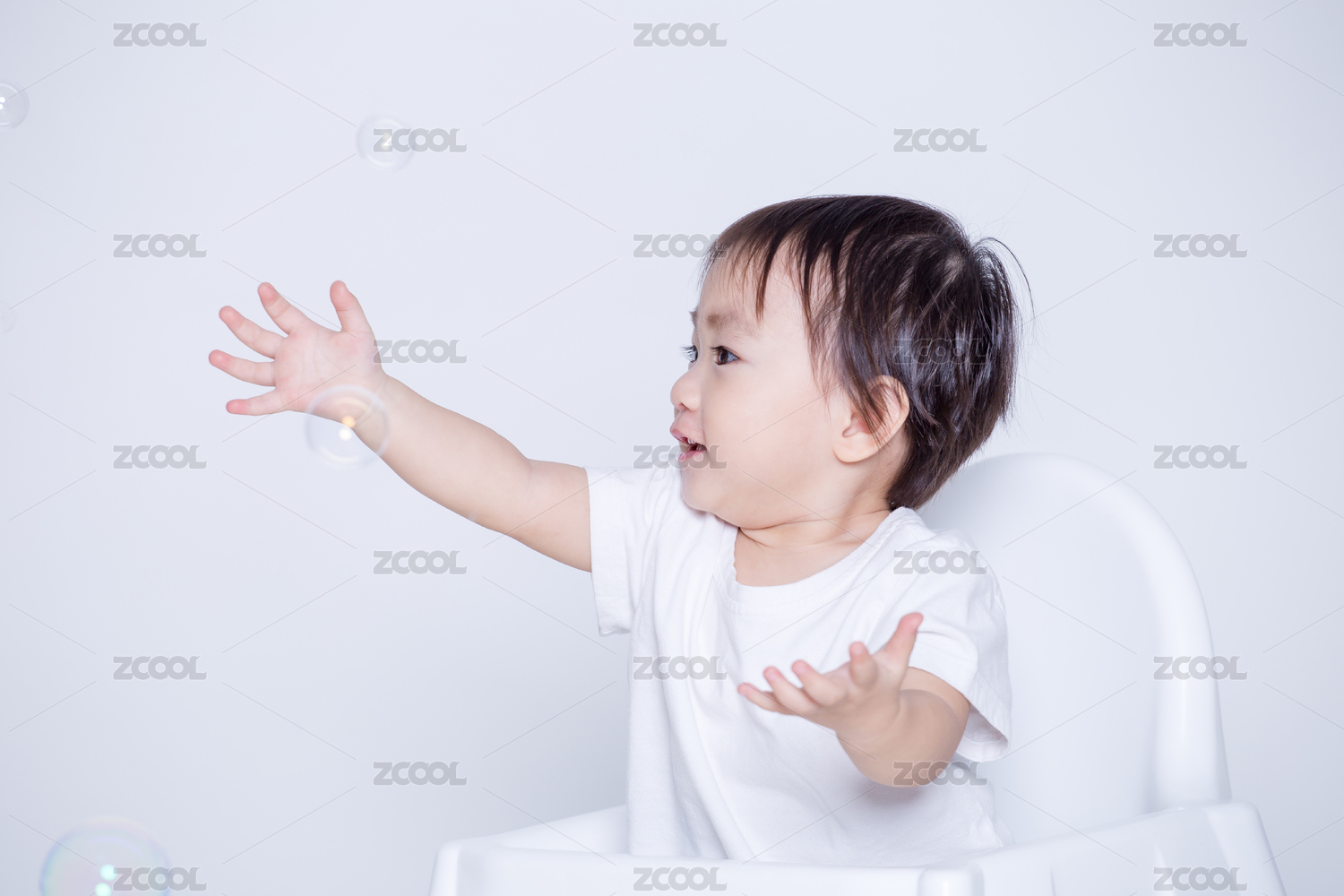 中國女寶寶小孩微笑坐伸手玩耍求抱抱