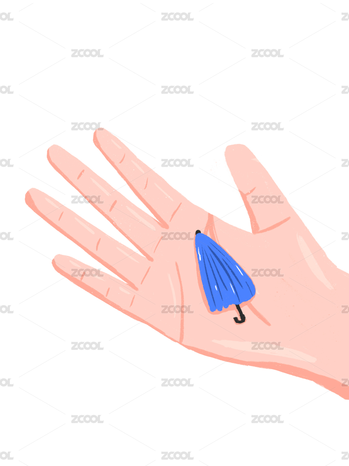 一只大大的手掌中有一把藍色小傘