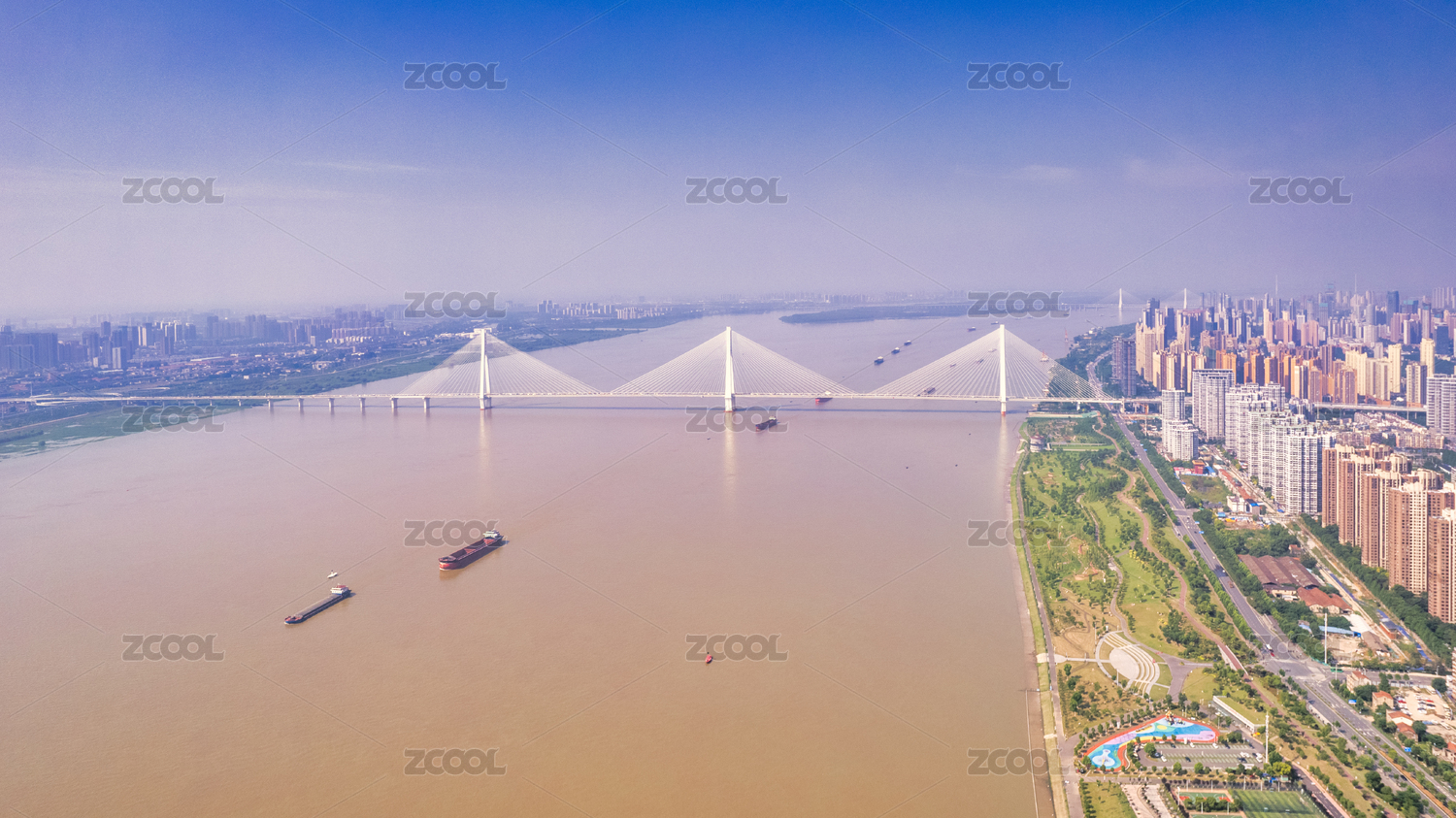 武漢漢口江灘長江兩岸日出朝霞城市天際線