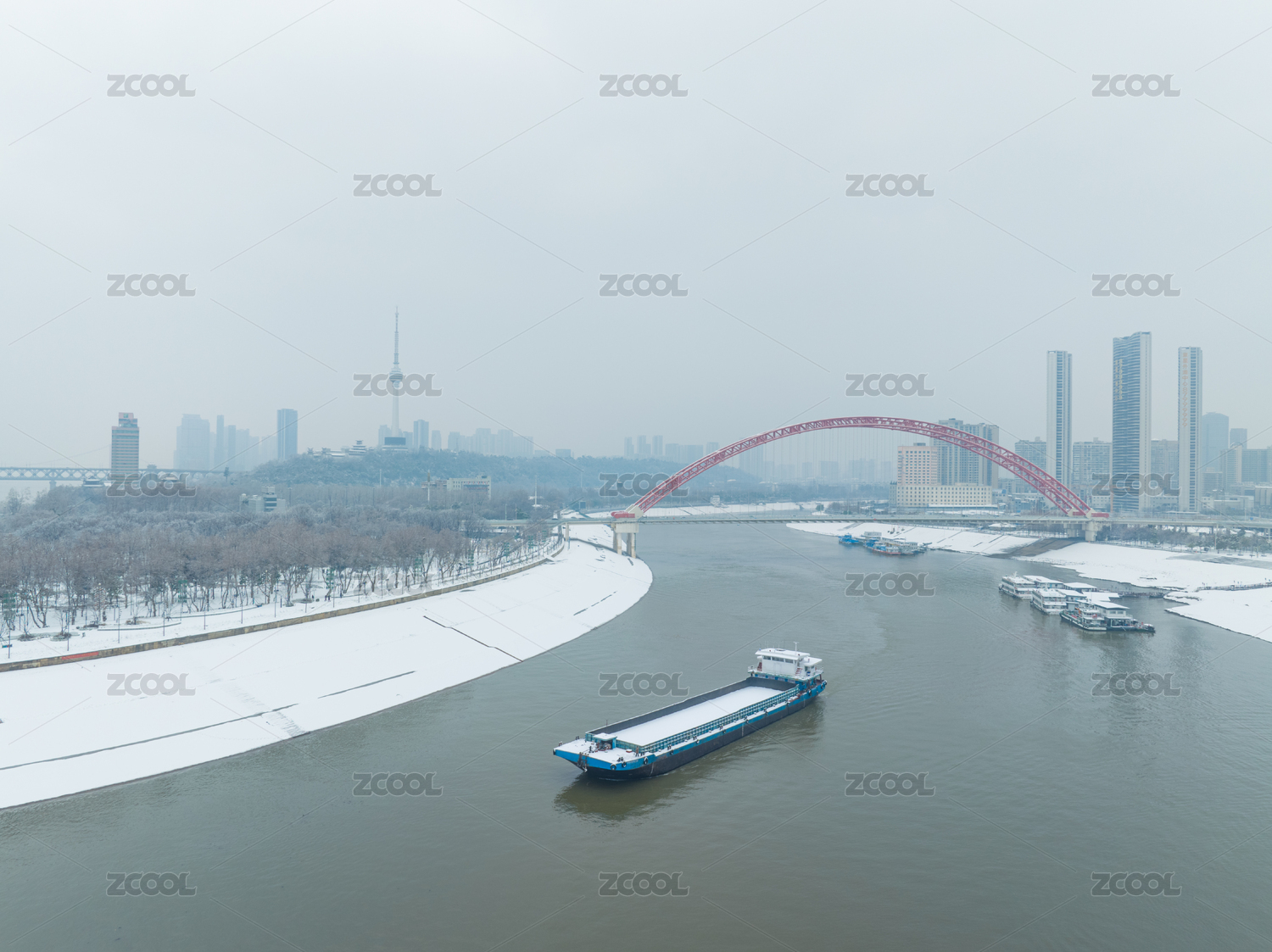 武漢漢陽江灘和南岸嘴公園雪景風(fēng)光