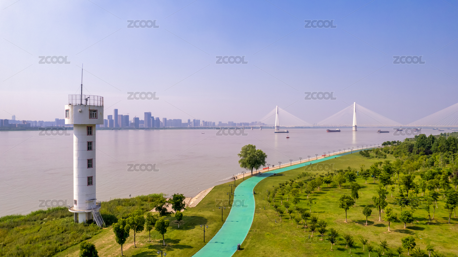 航拍中國湖北武漢長江青山江灘城市江灘堤防