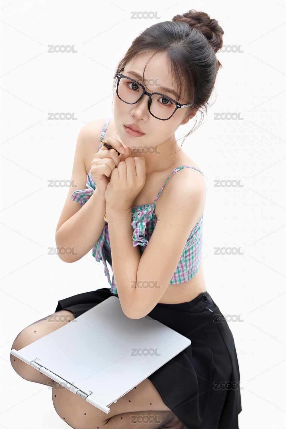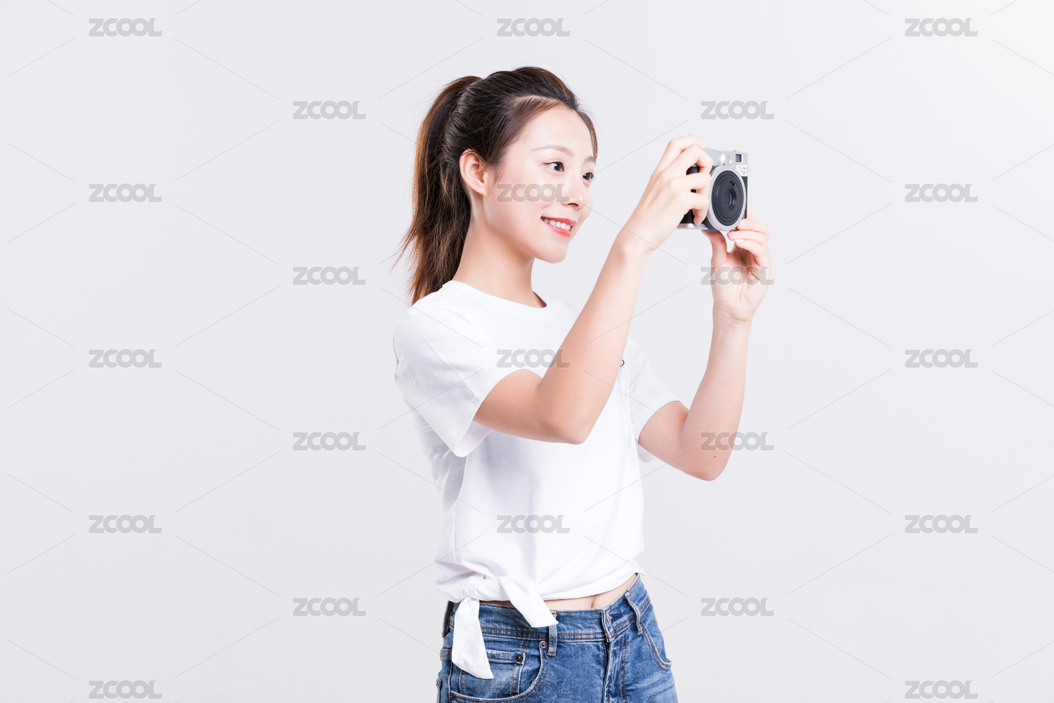 學(xué)校校園內(nèi)一個青春活力少女美女正在當(dāng)人像攝影模特