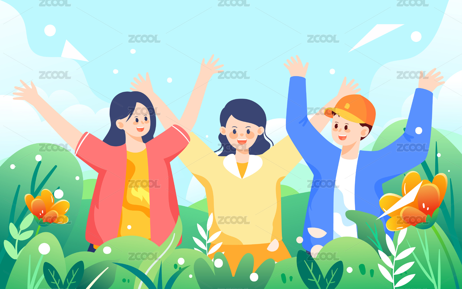 五四青年節(jié)年輕人青春活力插畫開心激動海報