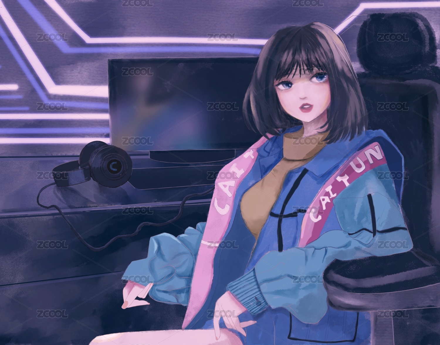 青春活力二次元游戲黑客網(wǎng)絡(luò)少女