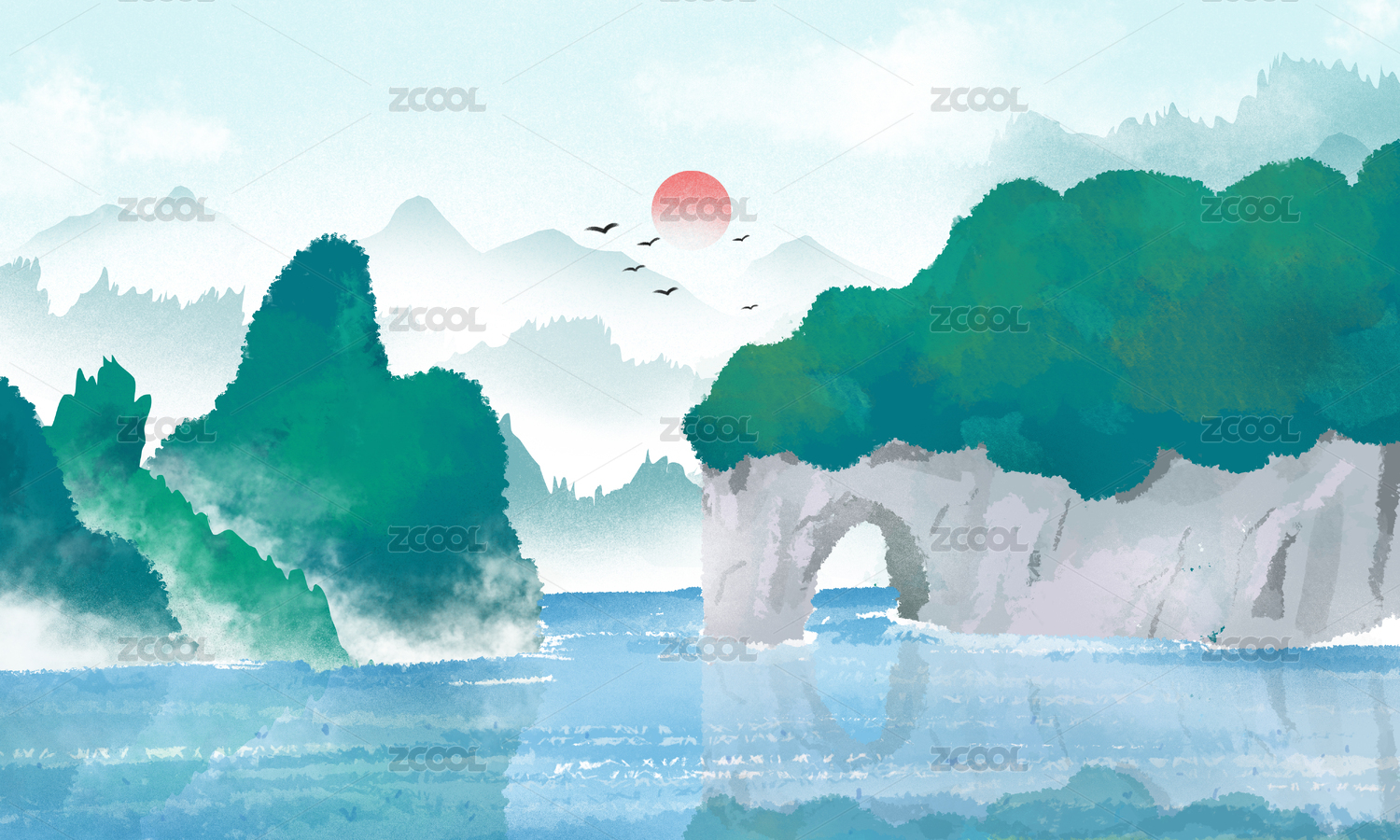 中國風節(jié)氣桂林山水象牙山落日風景詩意景色