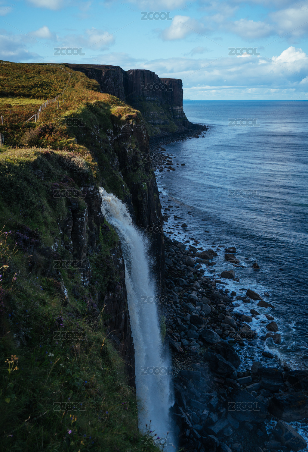 蘇格蘭天空島的瀑布直入大海