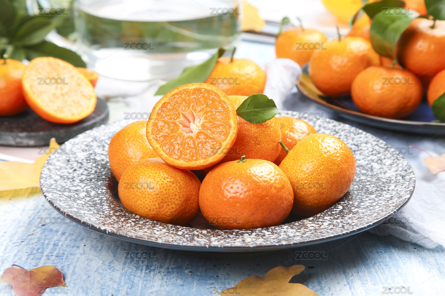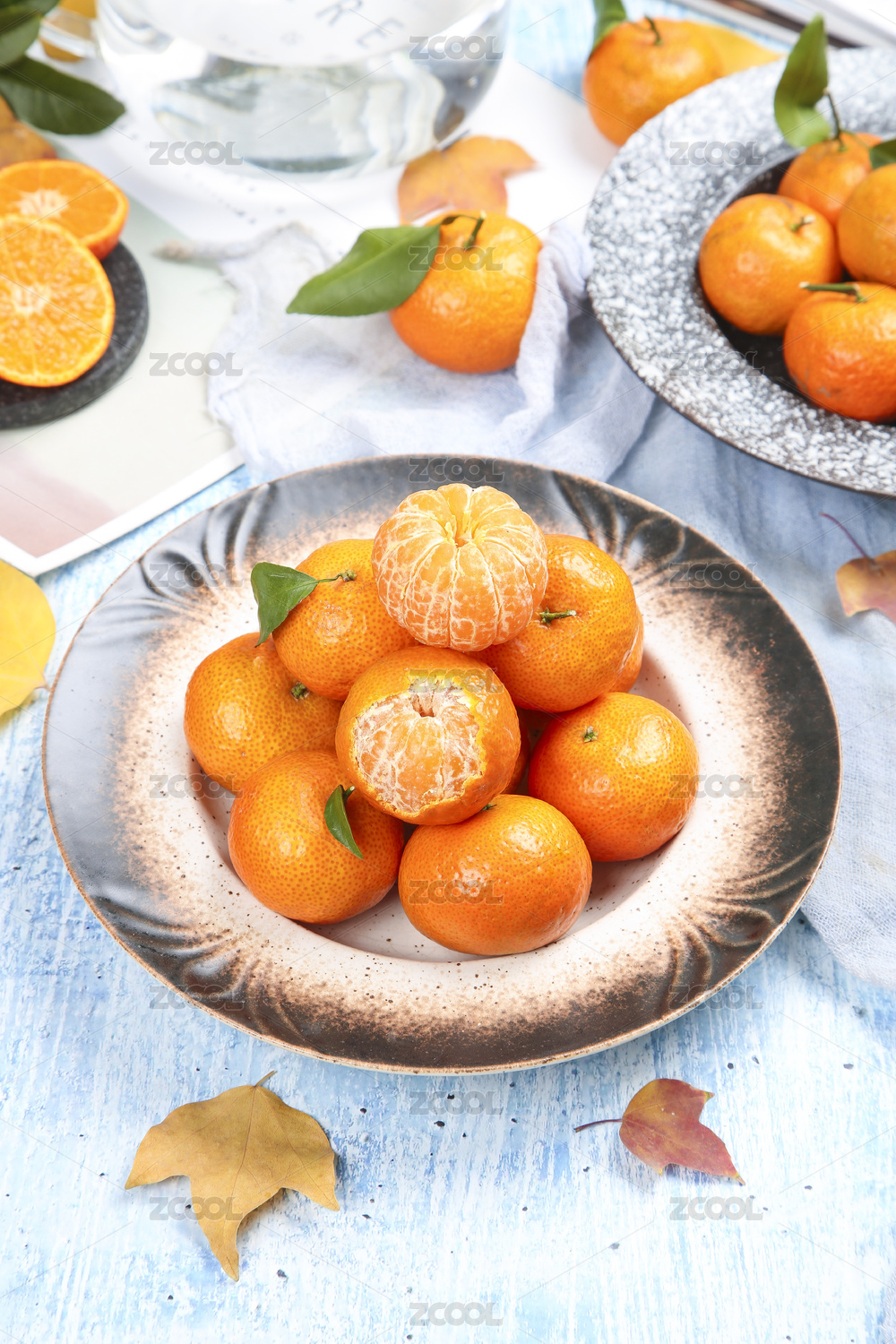 淺藍底上放著一盤四會砂糖橘