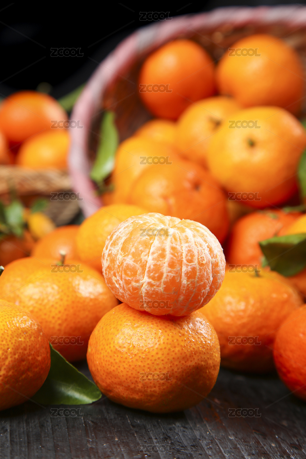 黑底上放著一簍四會砂糖橘