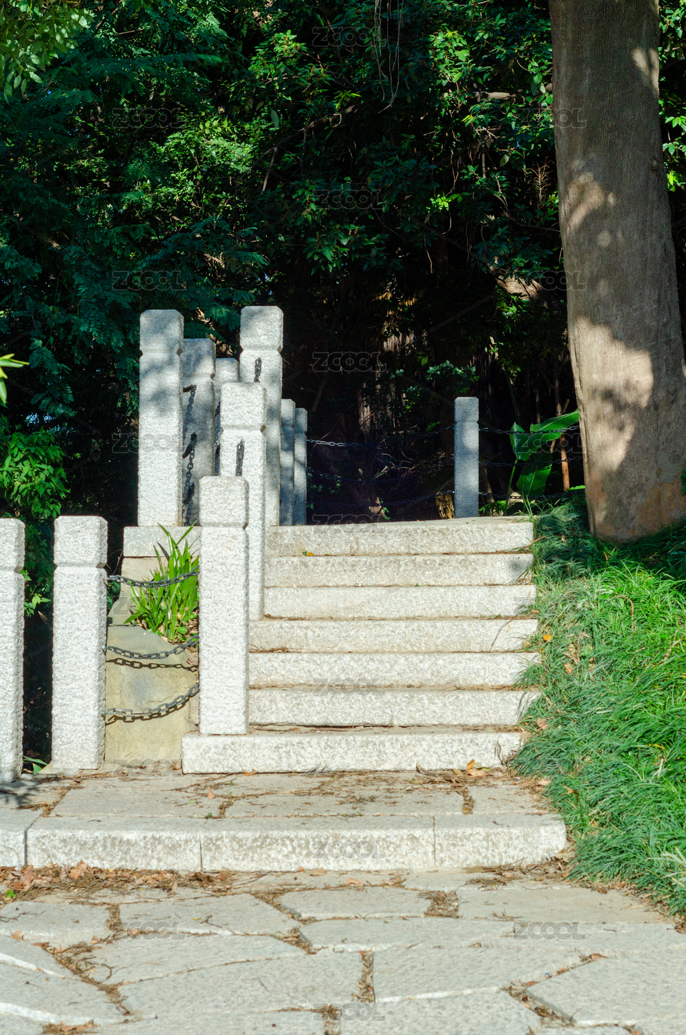 公園石臺(tái)階光影