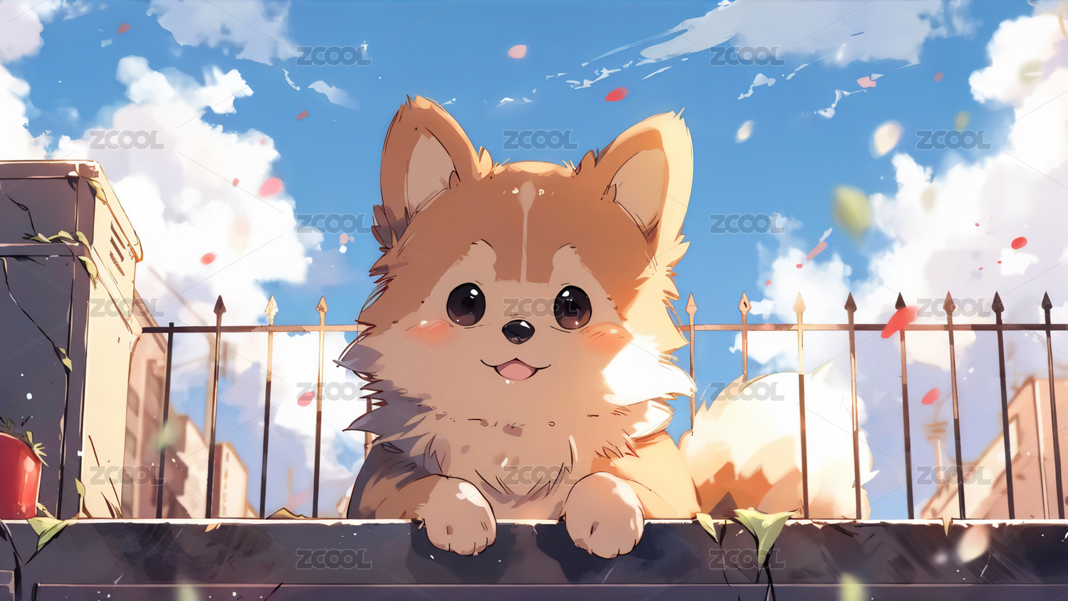 臺(tái)階上的小狗