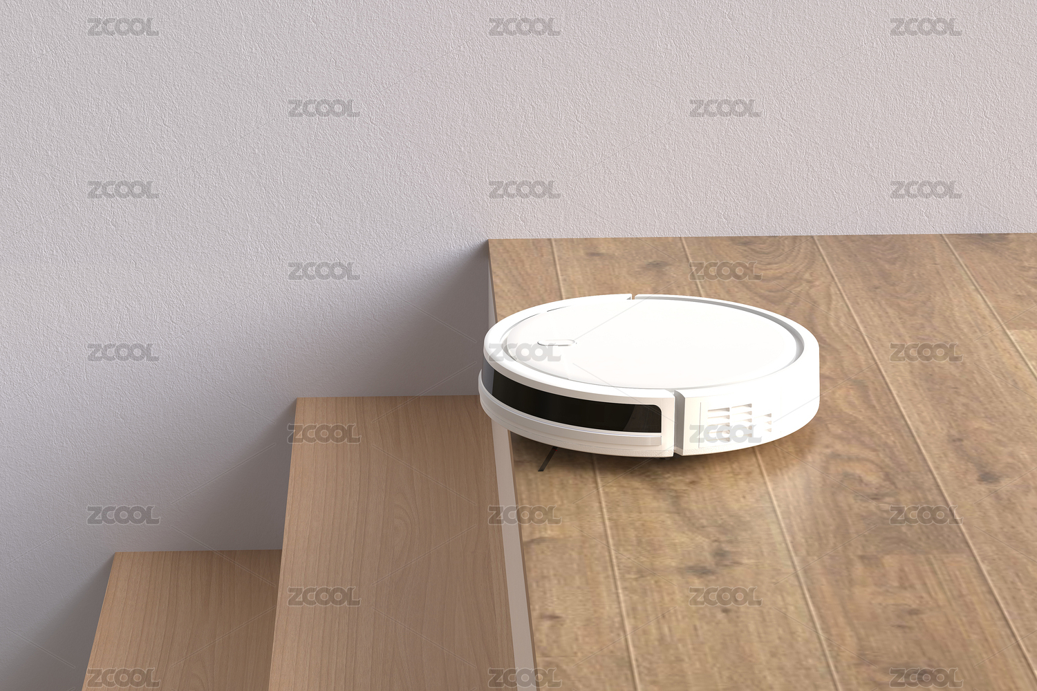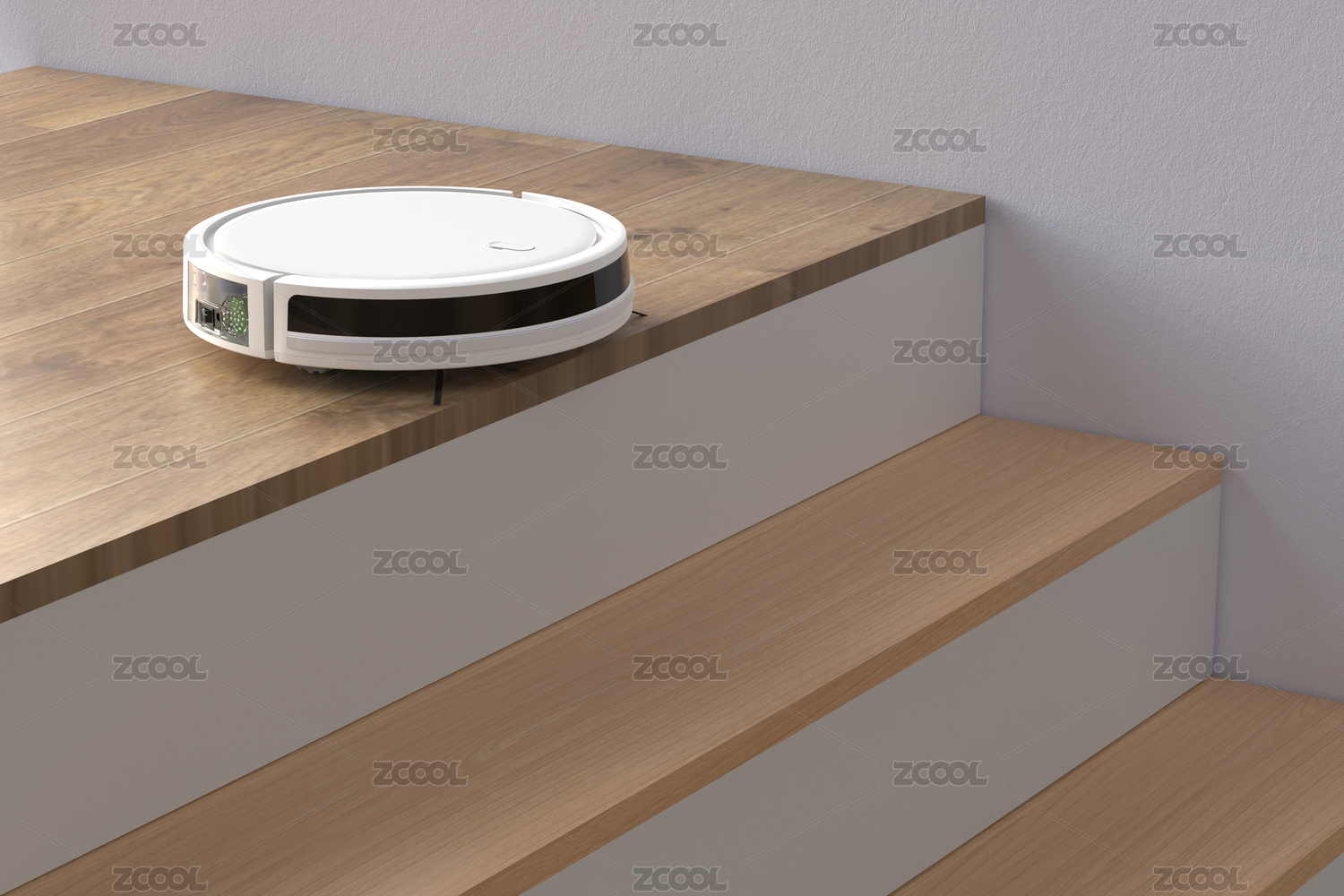 3D渲染臺(tái)階上的掃地機(jī)器人
