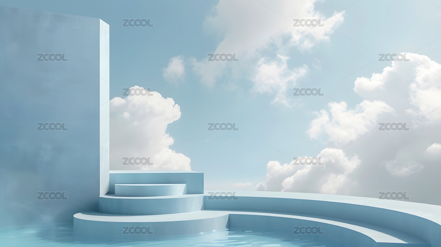 3D天空上的露天臺(tái)階場(chǎng)景