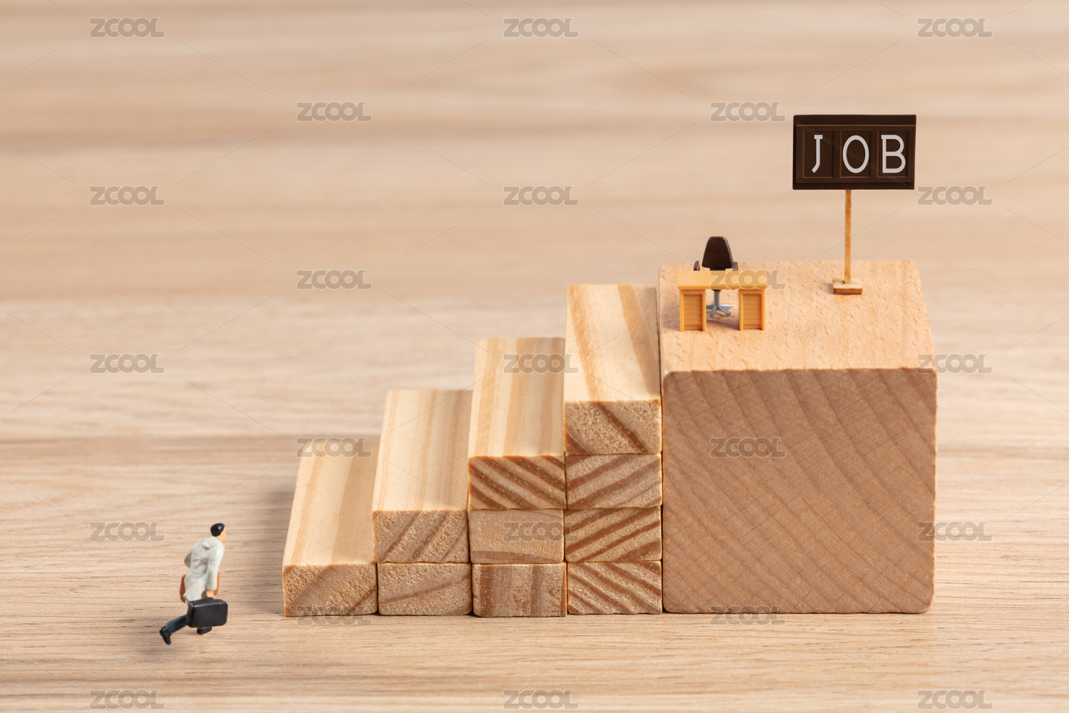 微縮創(chuàng)意臺(tái)階原木色階梯努力找工作面試