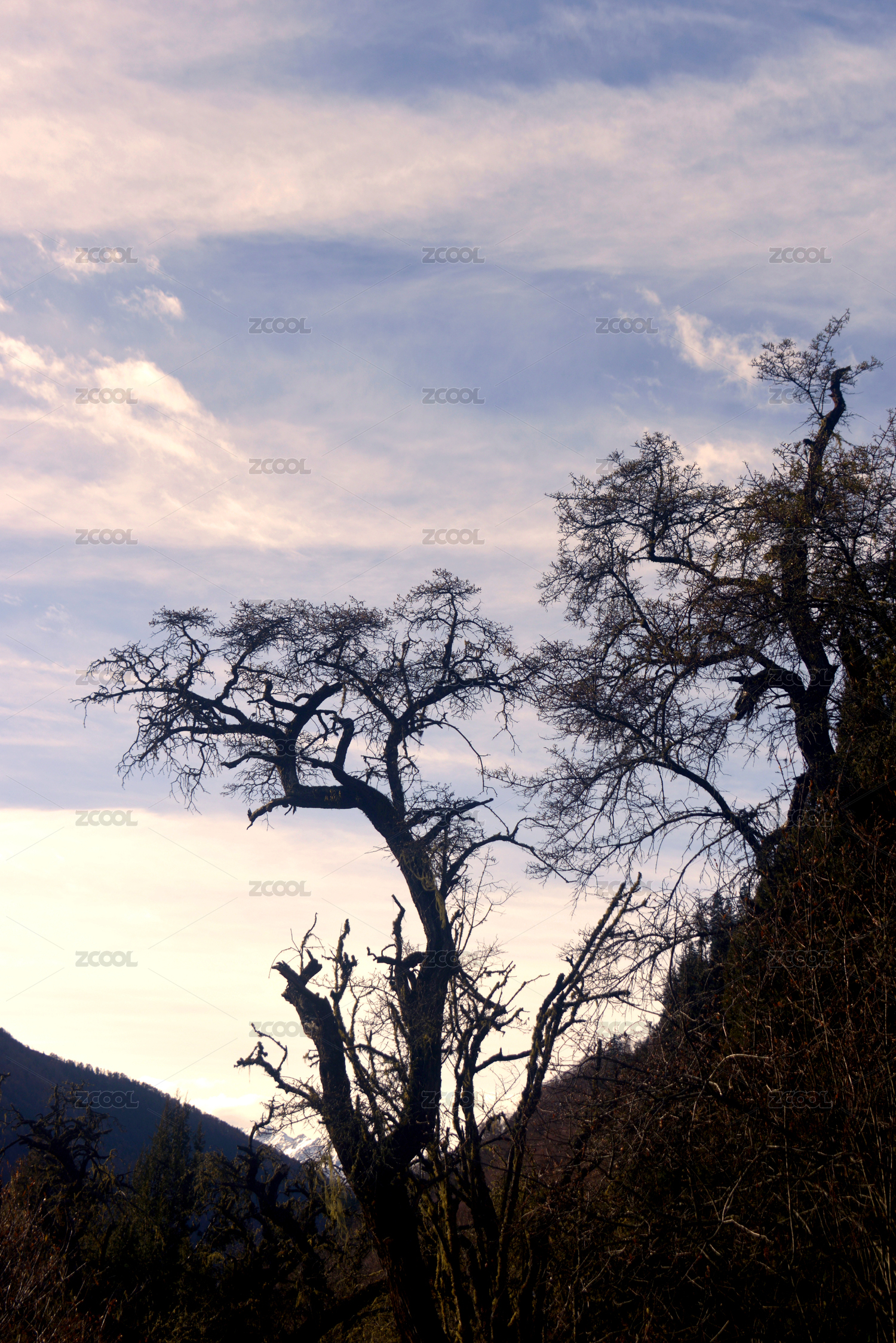 四川四姑娘山景區(qū)國畫樹沙棘古樹逆光素材