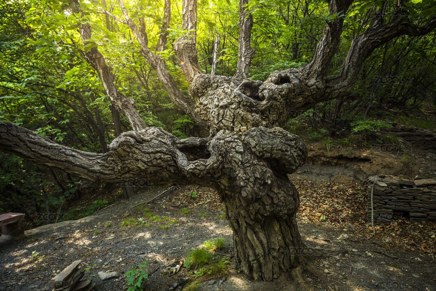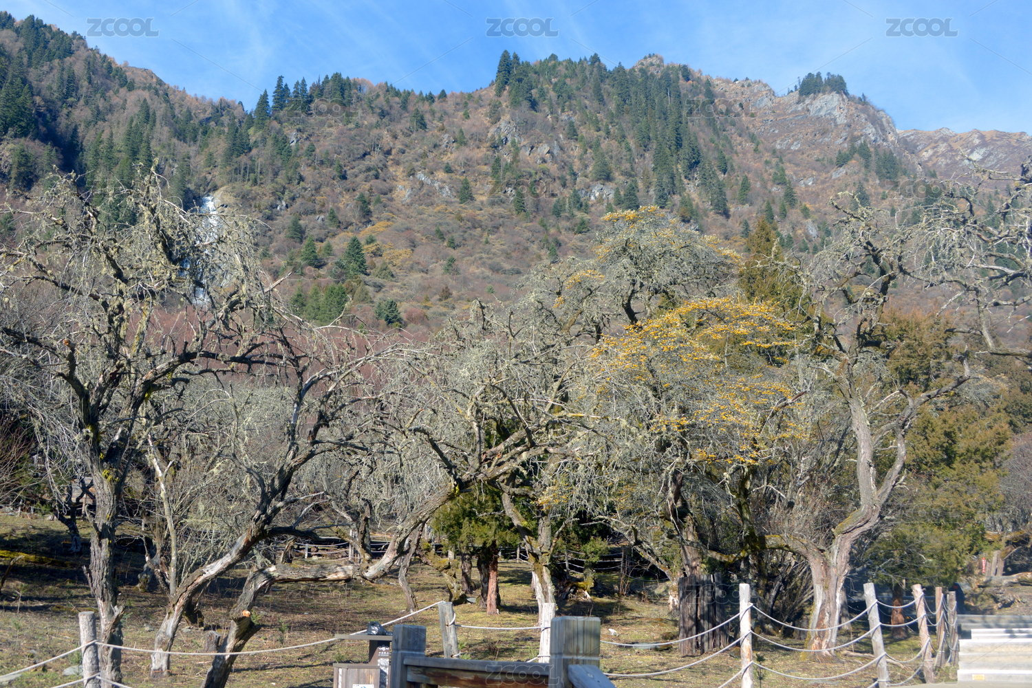 四川阿壩四姑娘山長坪溝棧道旁沙棘古樹林