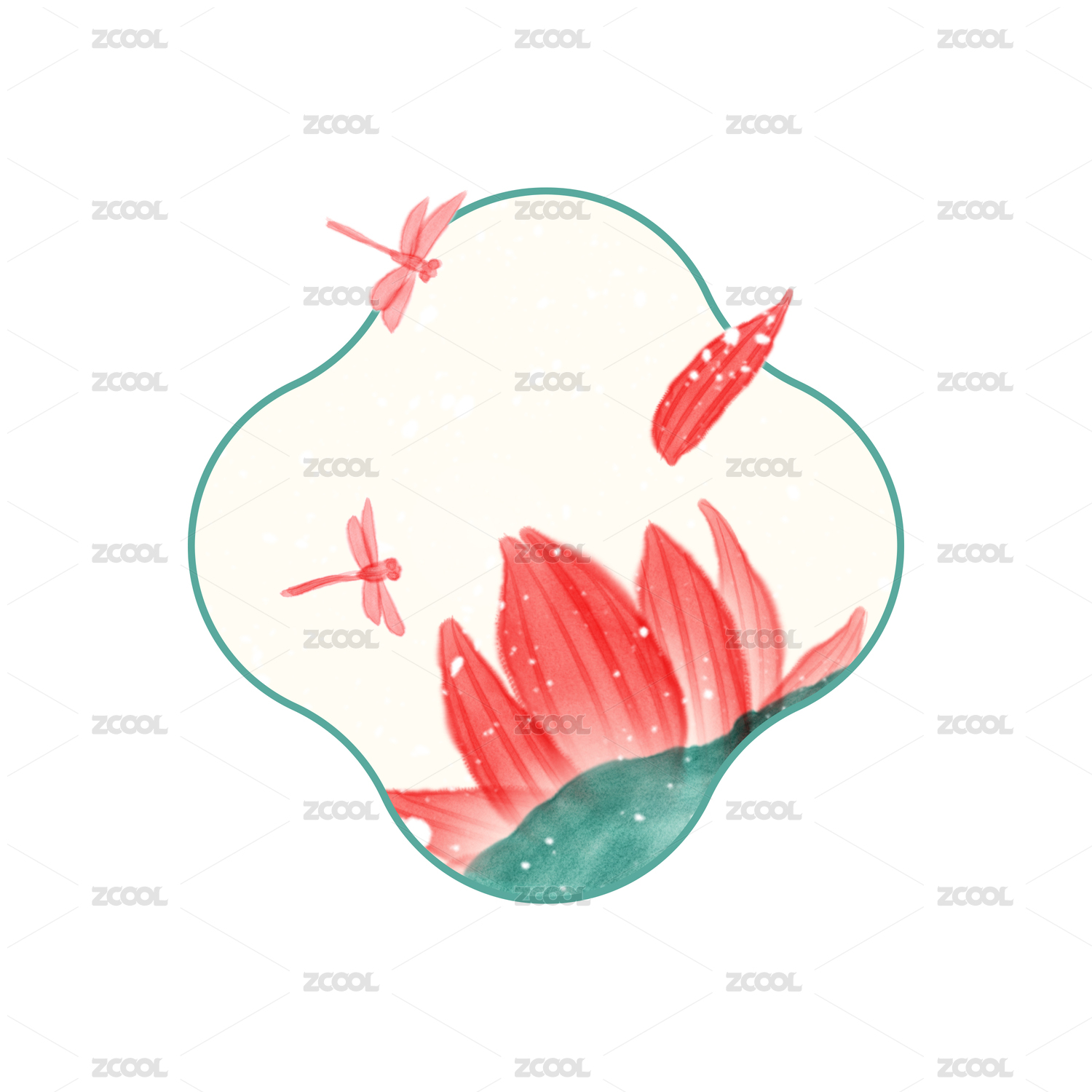 中式手繪水彩荷花裝飾圖案