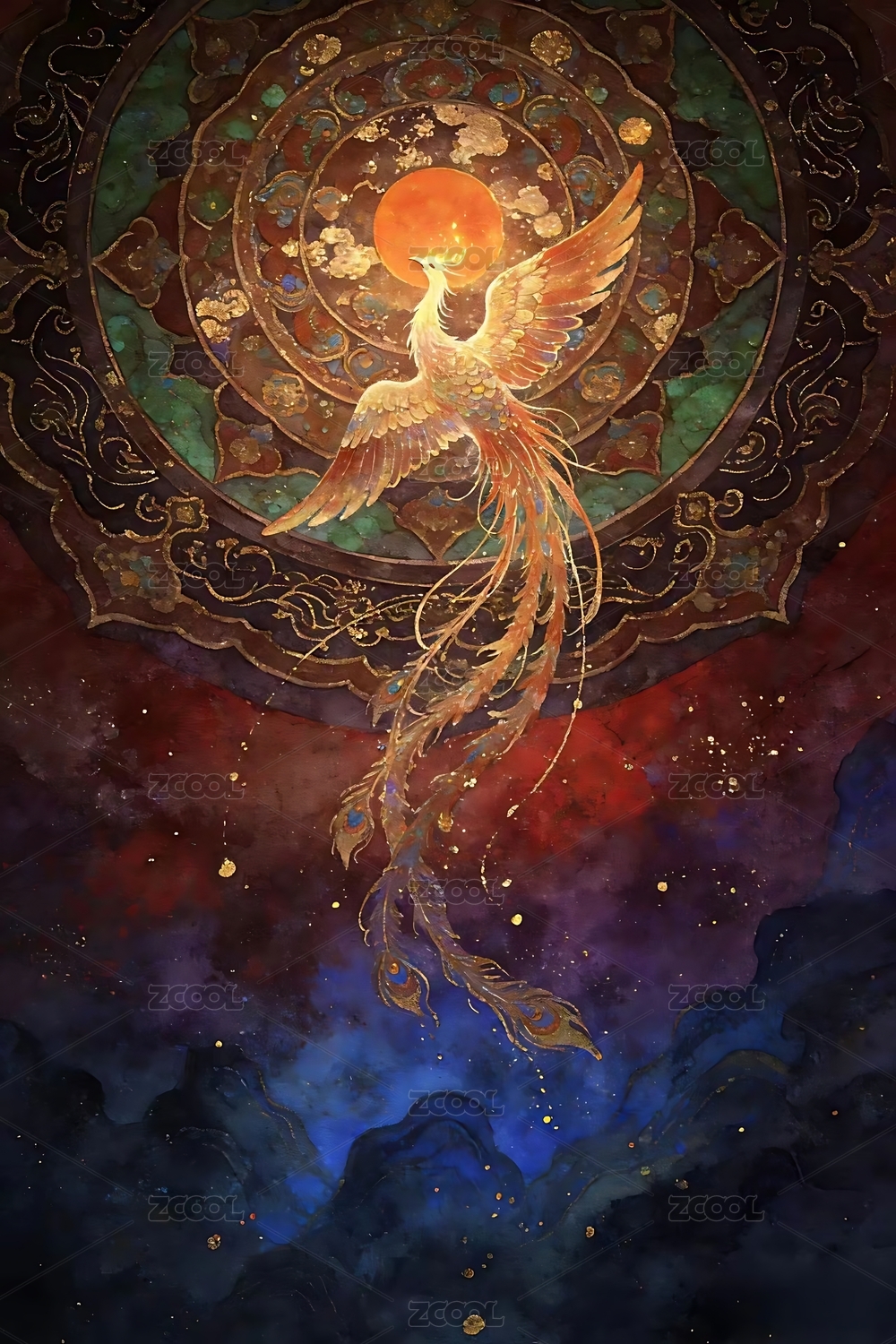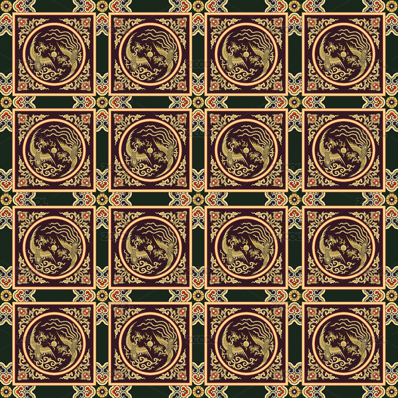 清代承乾宮建筑海漫天花上的鸞鳳喜相逢紋