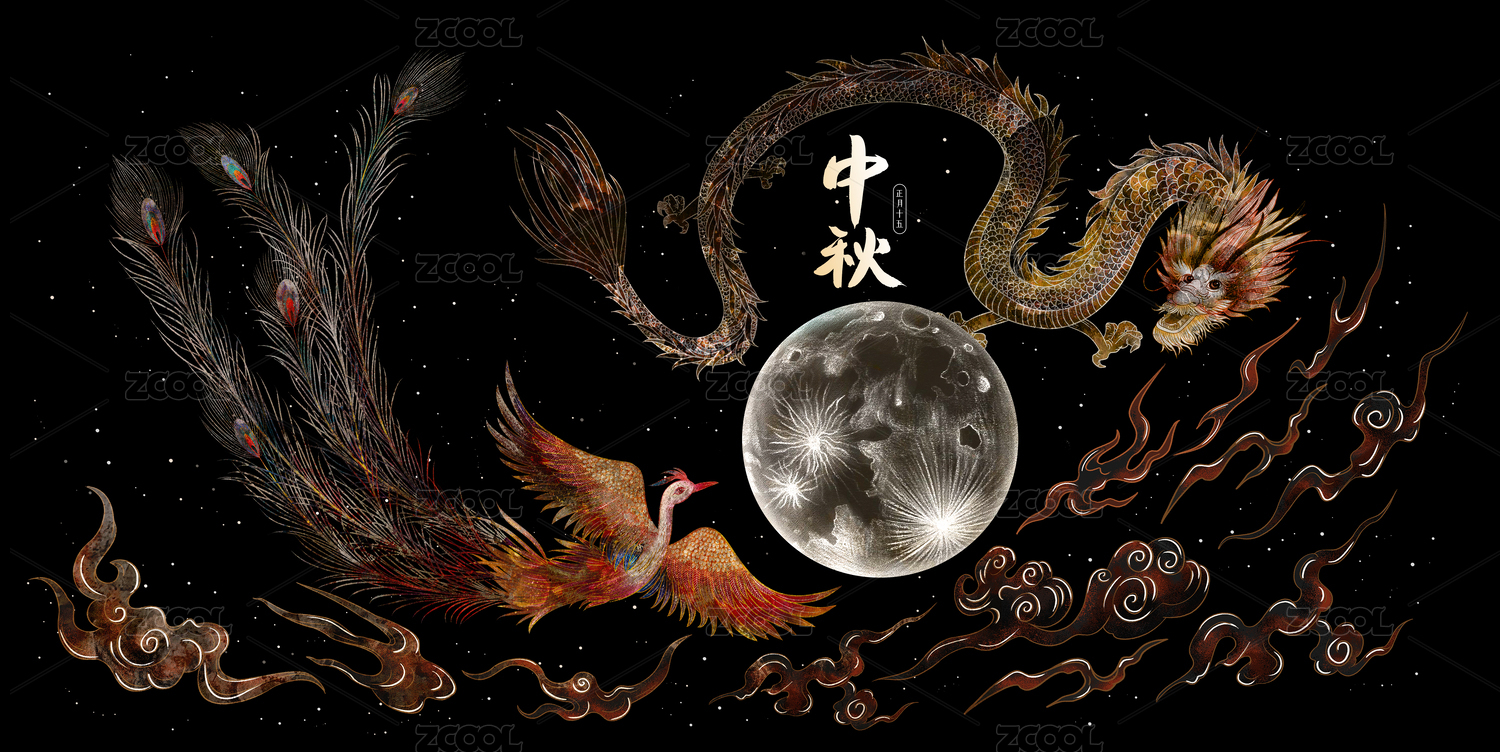 中秋節(jié)龍鳳呈祥月亮插畫海報