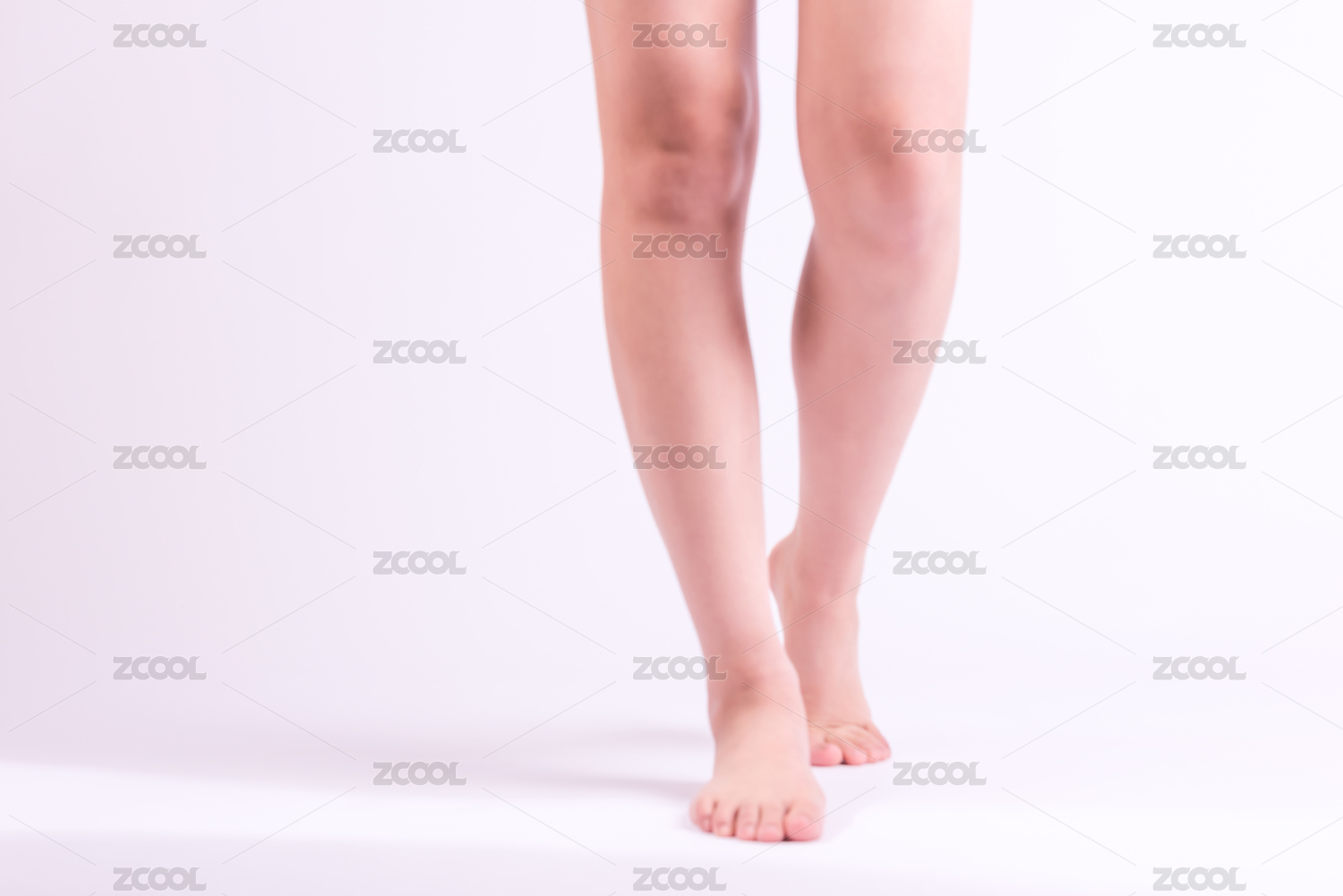 帶有自然肌膚的自然美麗的女人的腿站在白色的背景上