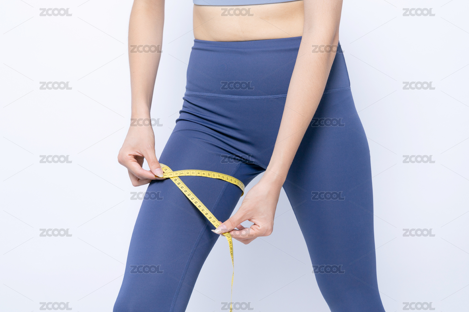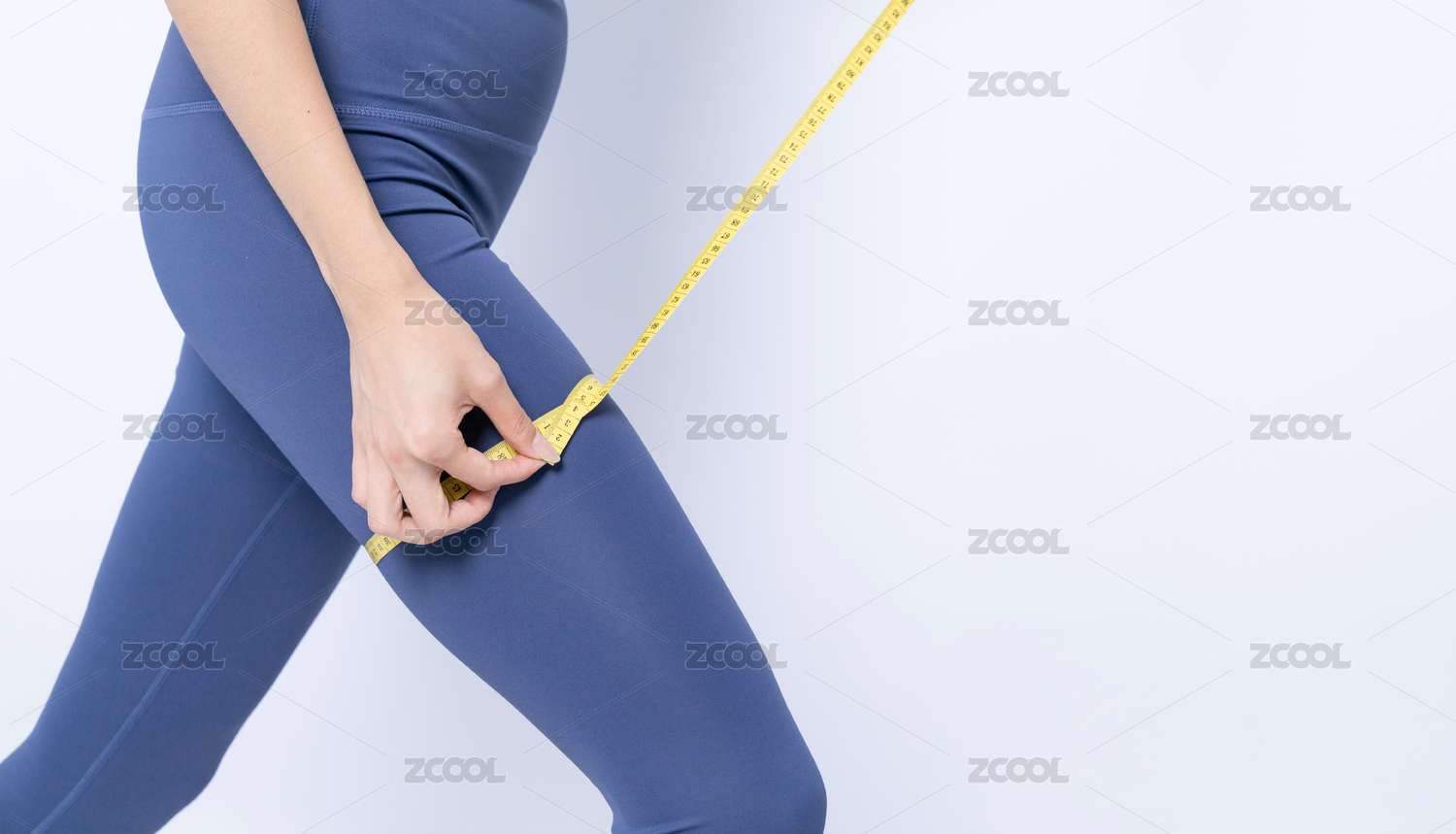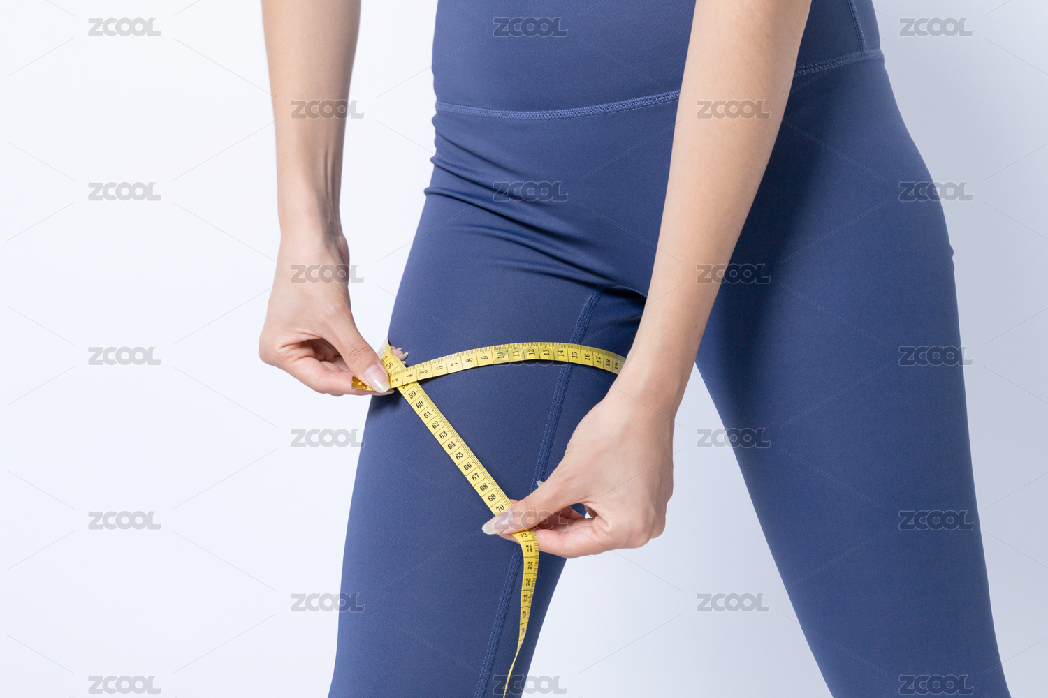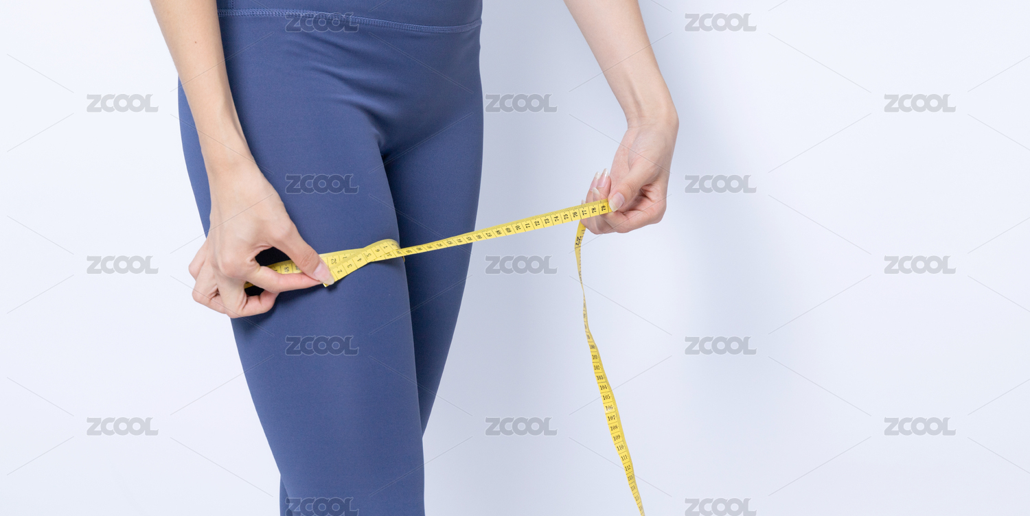 用軟尺測(cè)量腿圍的年輕女性