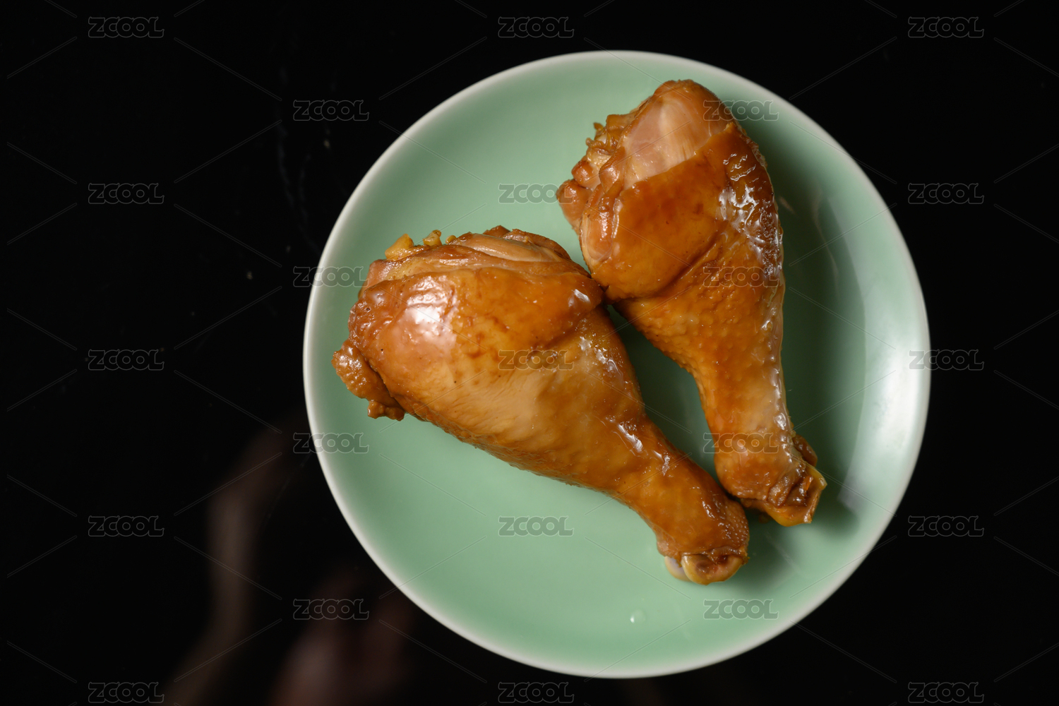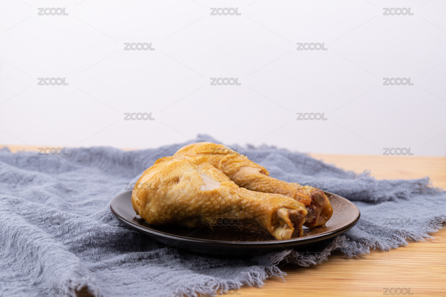 桌面上的盤(pán)子里的美味可口的鹵雞腿