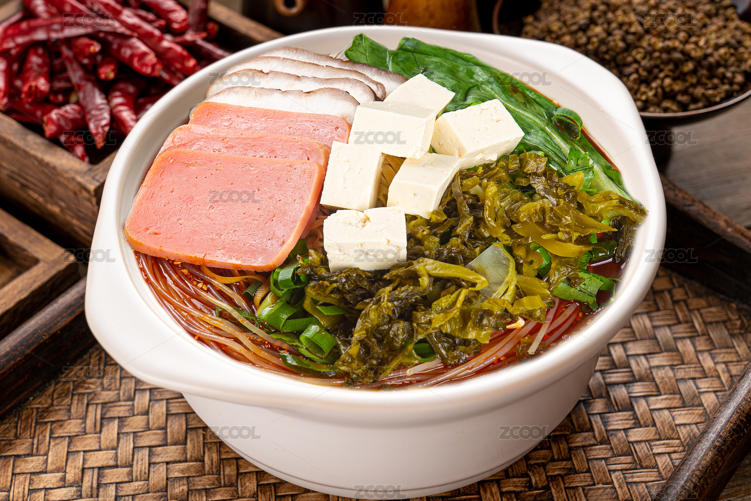 餐盤(pán)里的火腿豆腐米線
