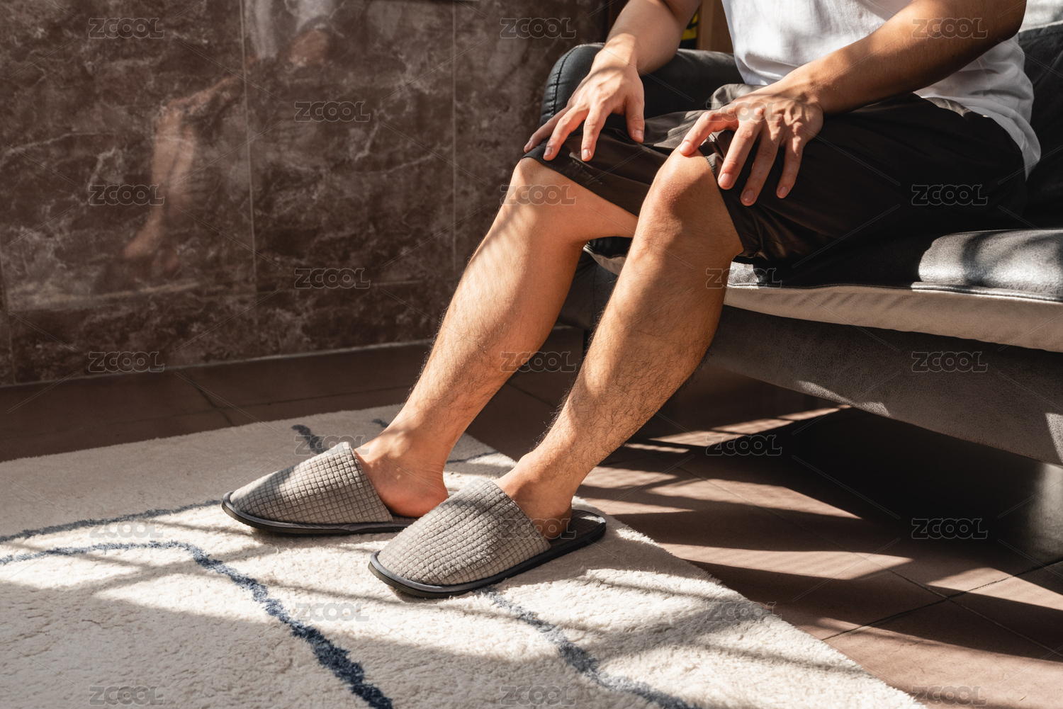 穿著居家拖鞋在家的腿部特寫(xiě)