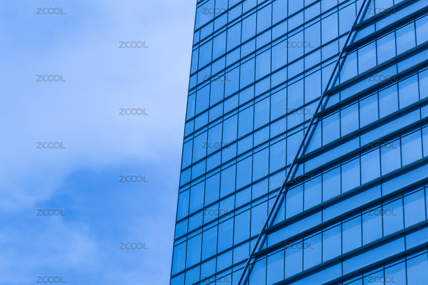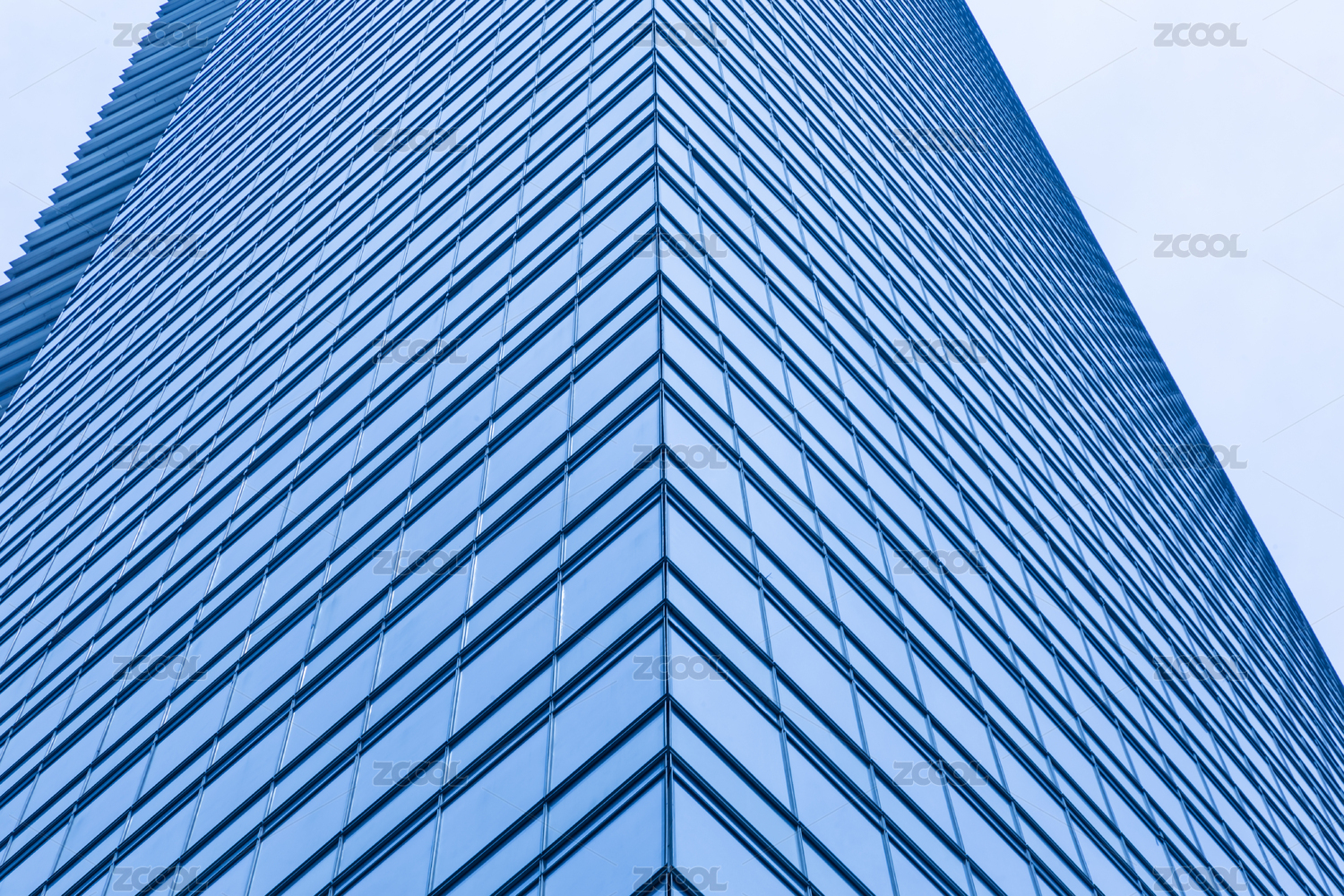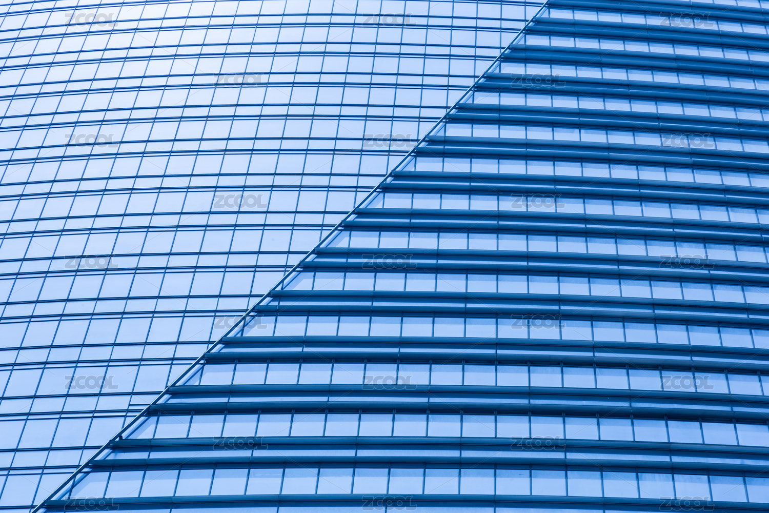 中國江蘇無錫摩天大樓玻璃幕墻寶藍(lán)色外立面特寫