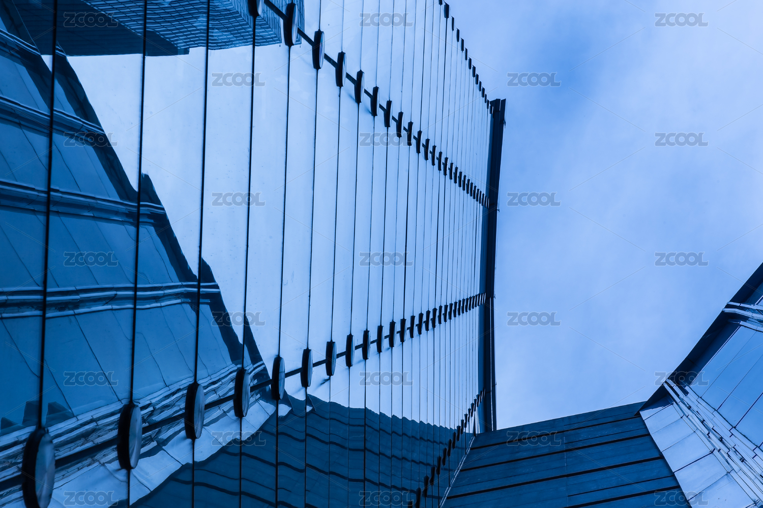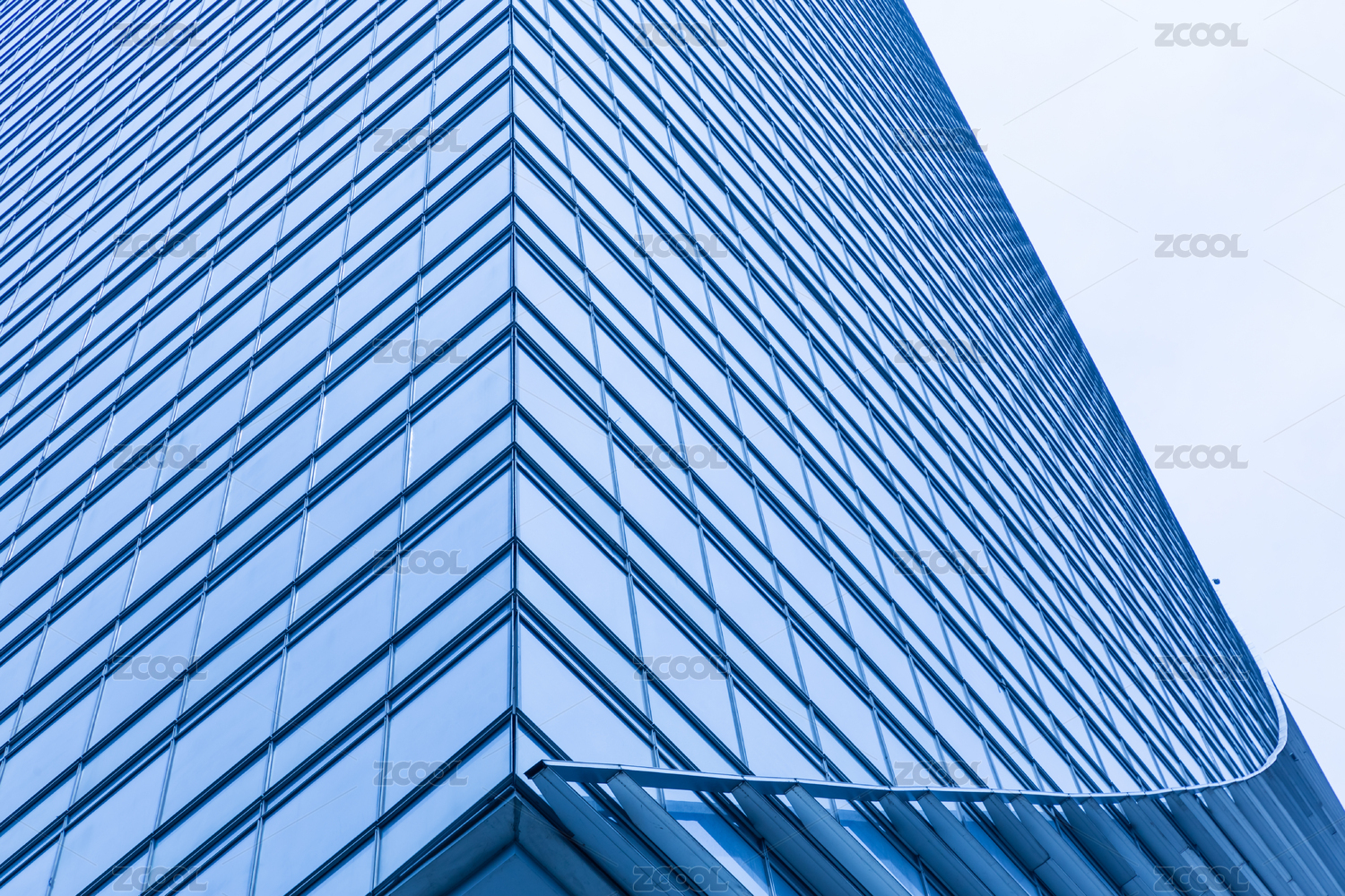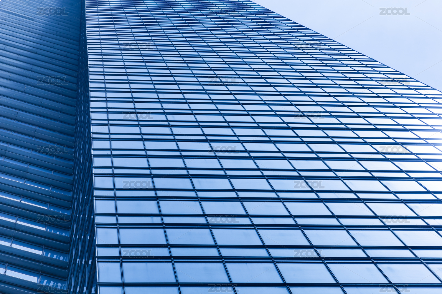 中國江蘇無錫摩天大樓玻璃幕墻寶藍(lán)色外立面特寫