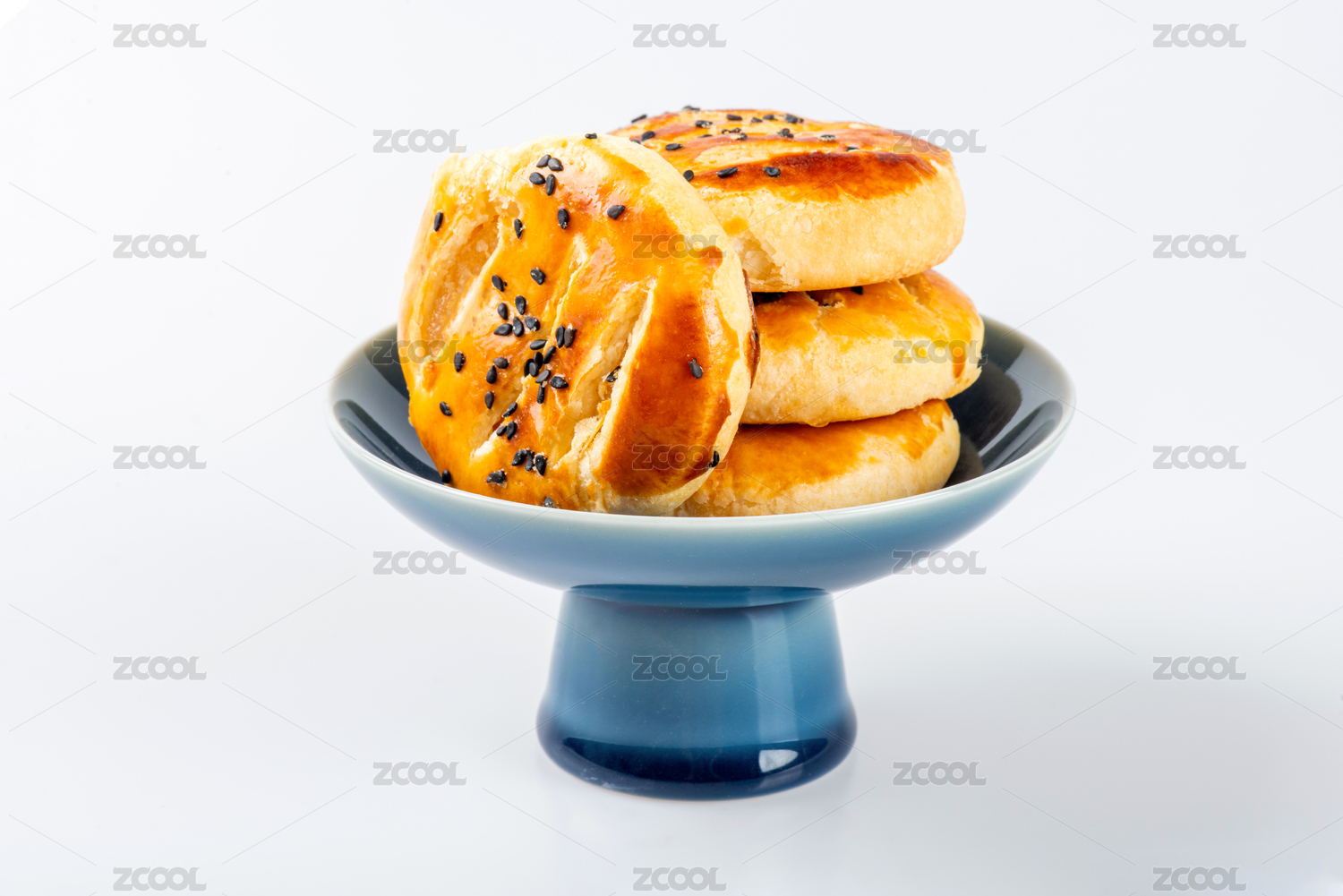 白底寶藍(lán)色高腳盤裝老婆餅