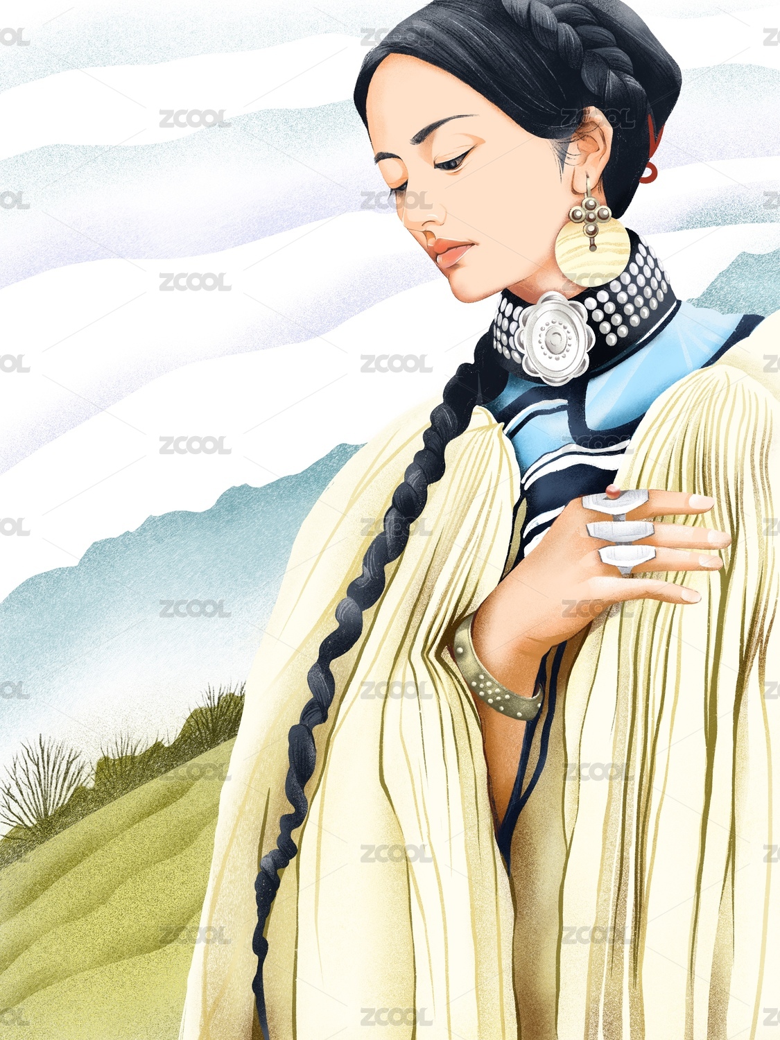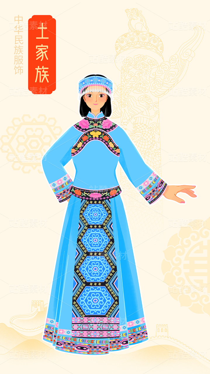 中國五十六個民族土家族少女盛裝女性服飾插畫