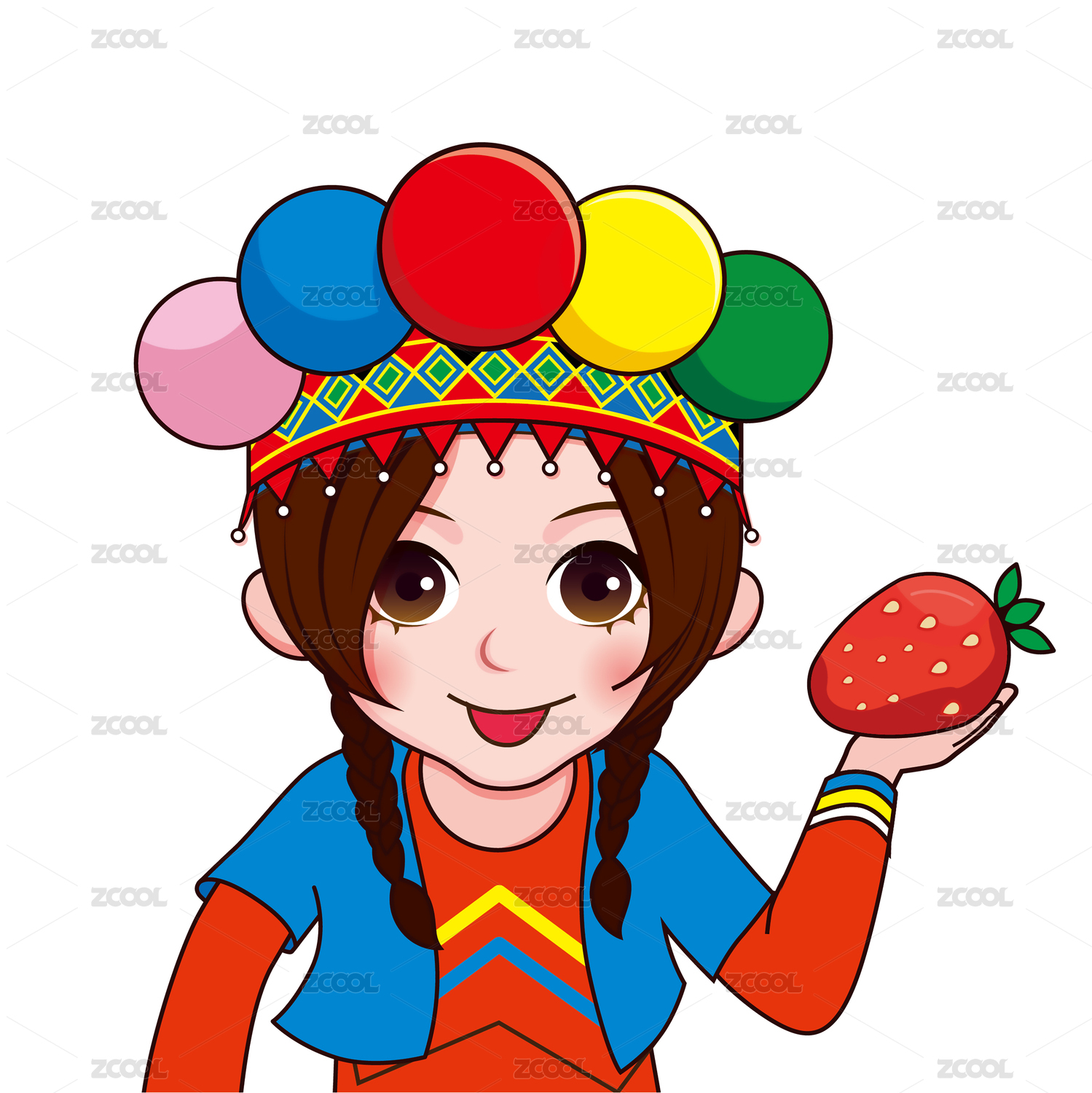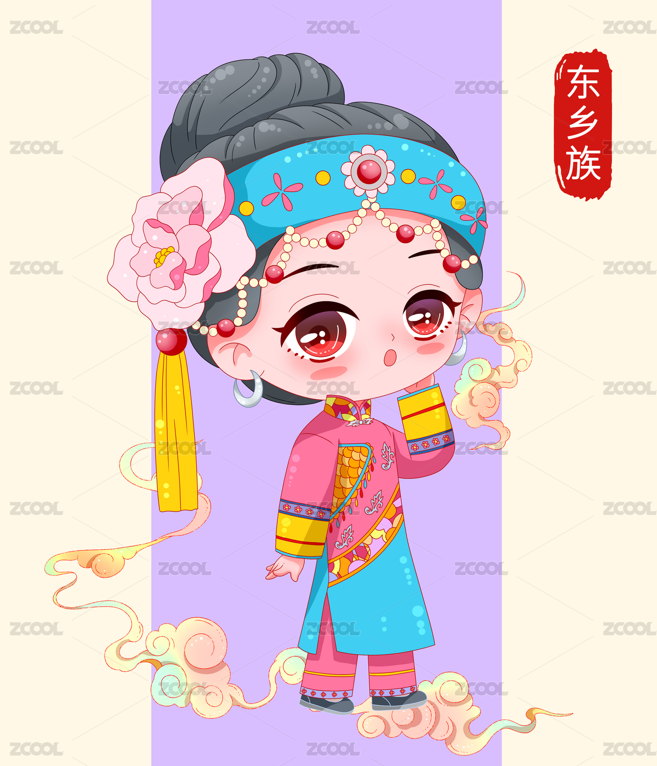 國潮卡通可愛少數(shù)民族東鄉(xiāng)族少女