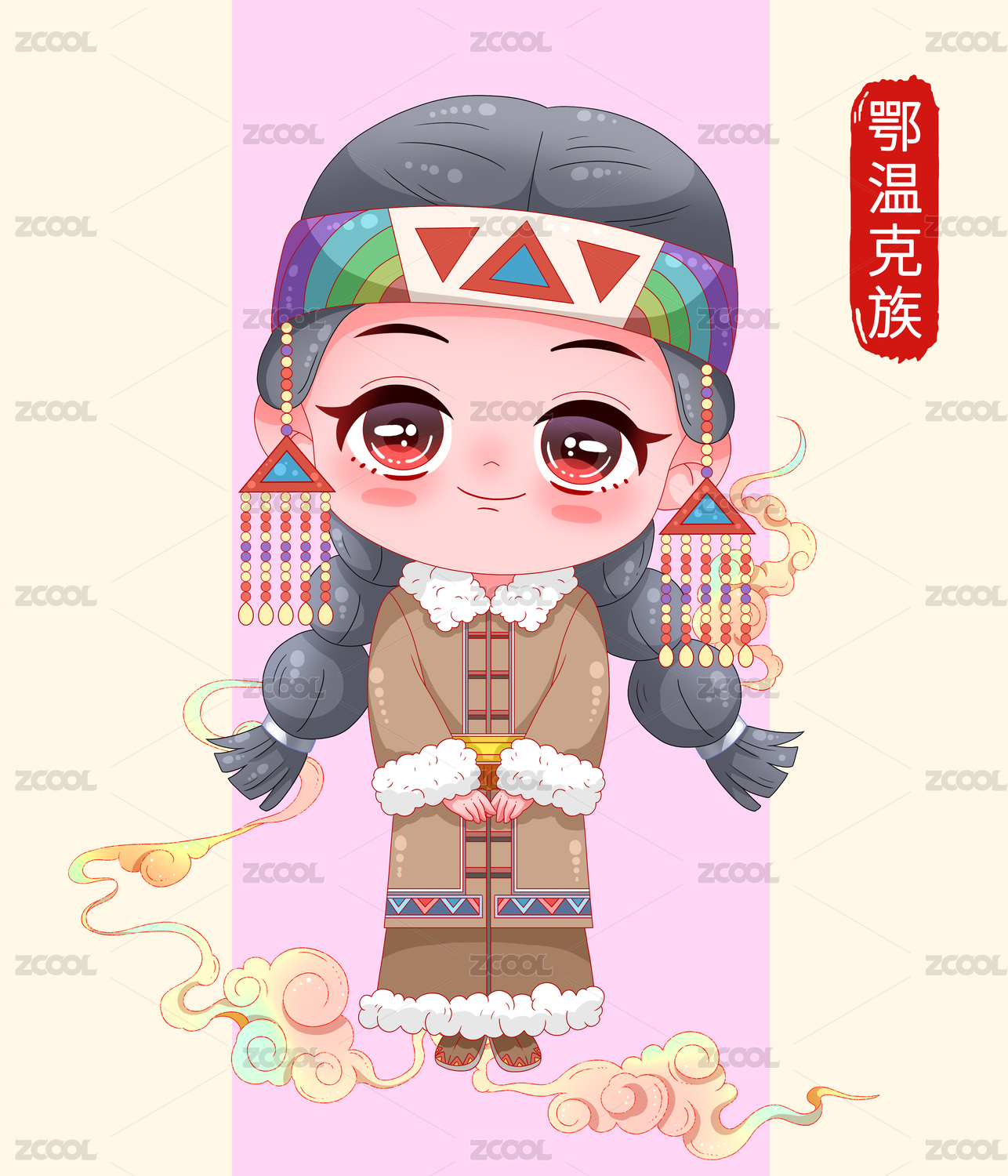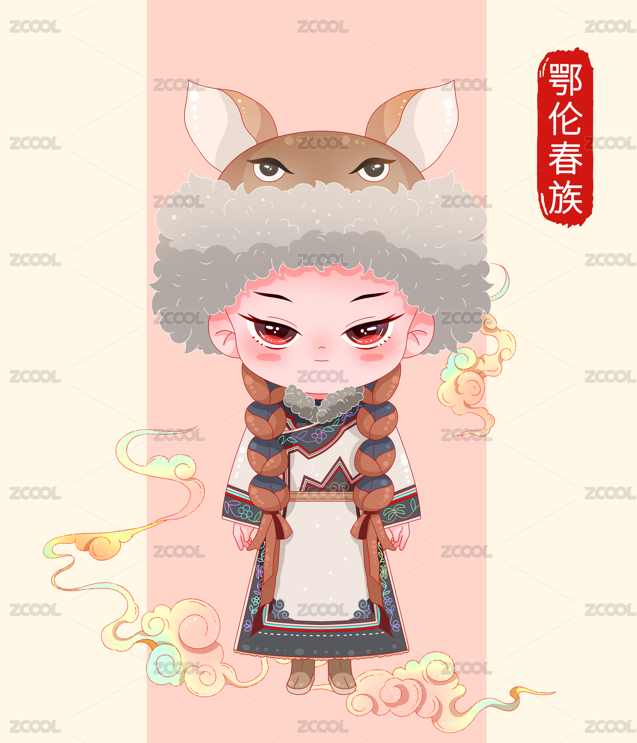 國潮卡通可愛少數(shù)民族鄂溫克族少女
