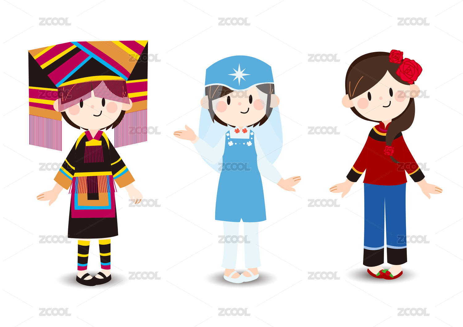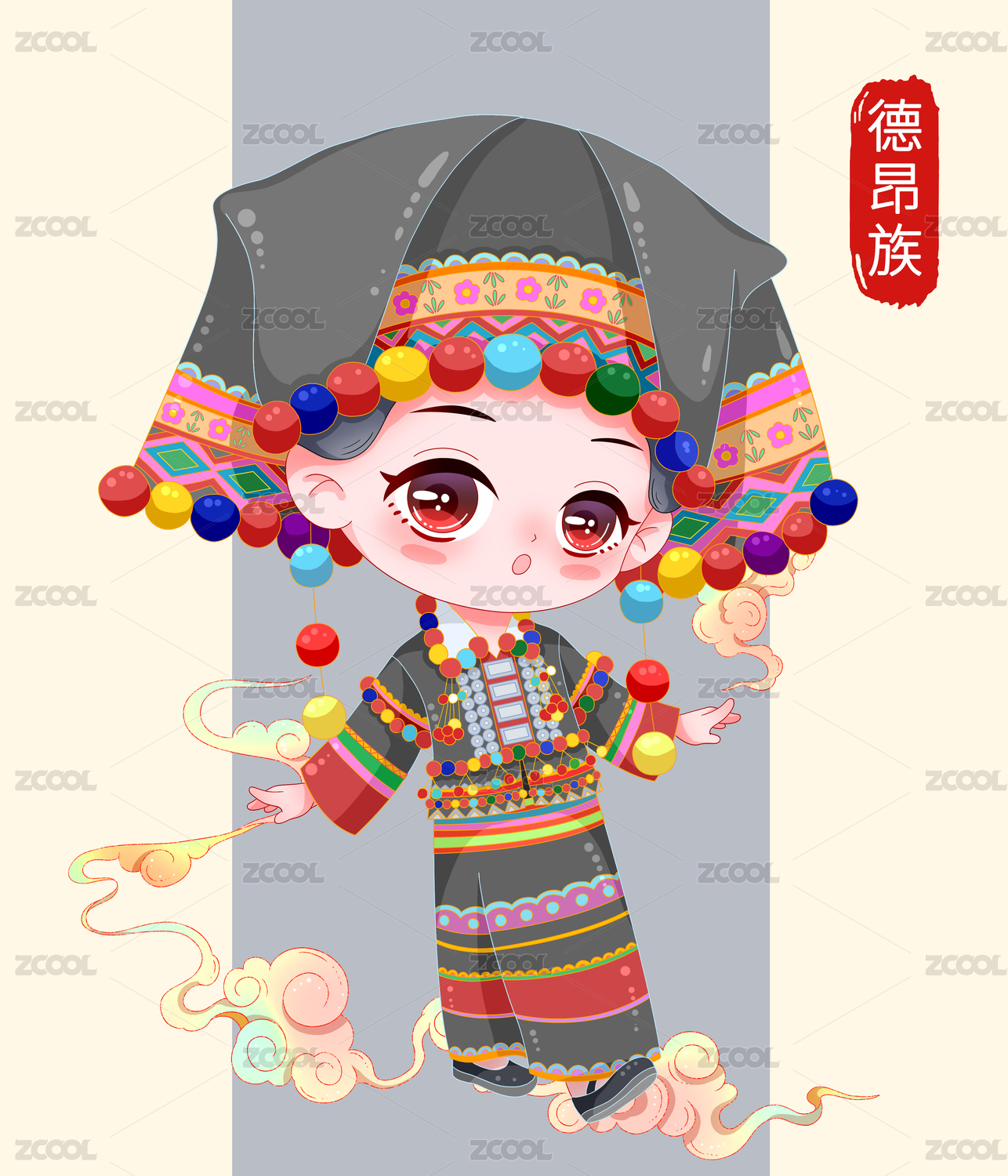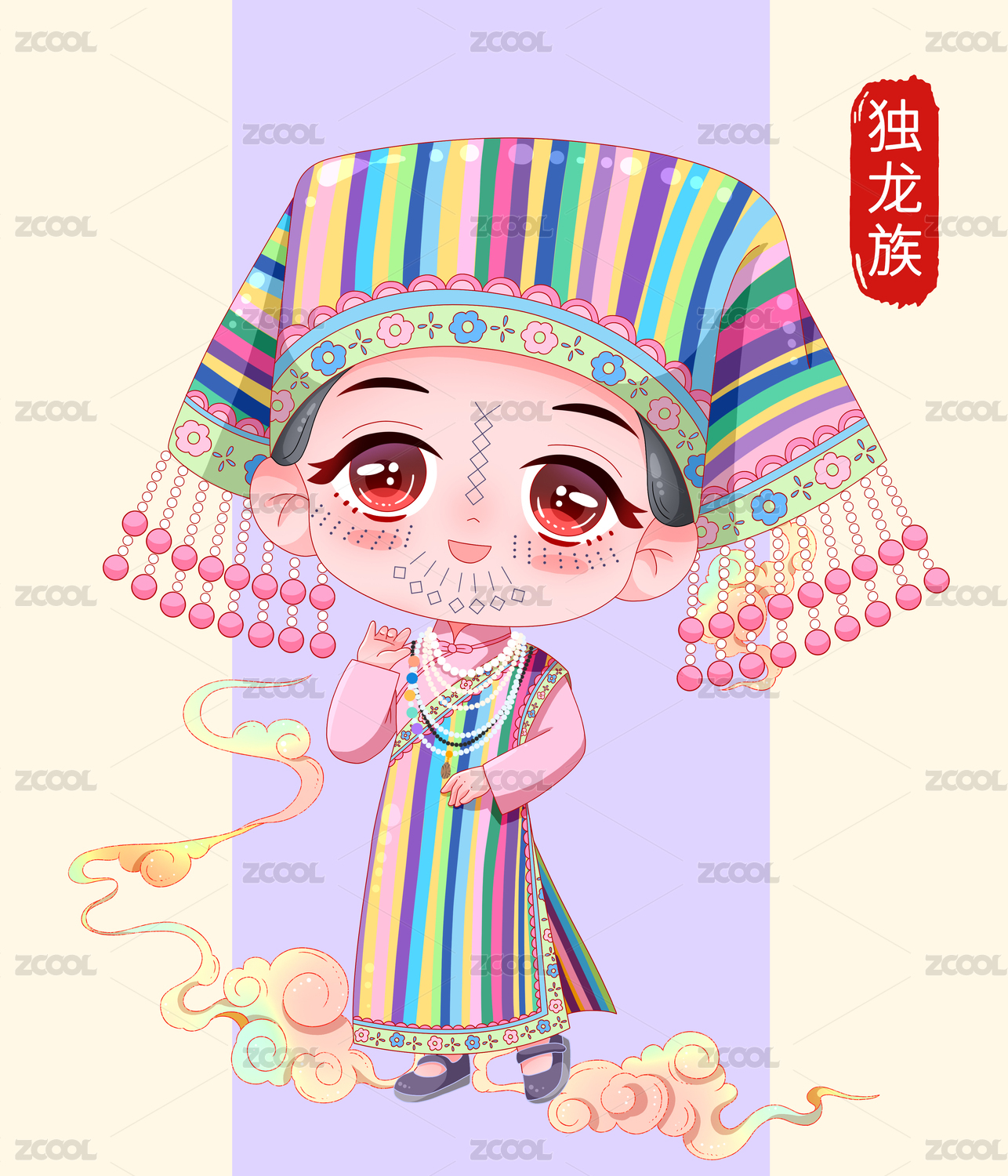 國潮卡通可愛少數(shù)民族獨龍族少女