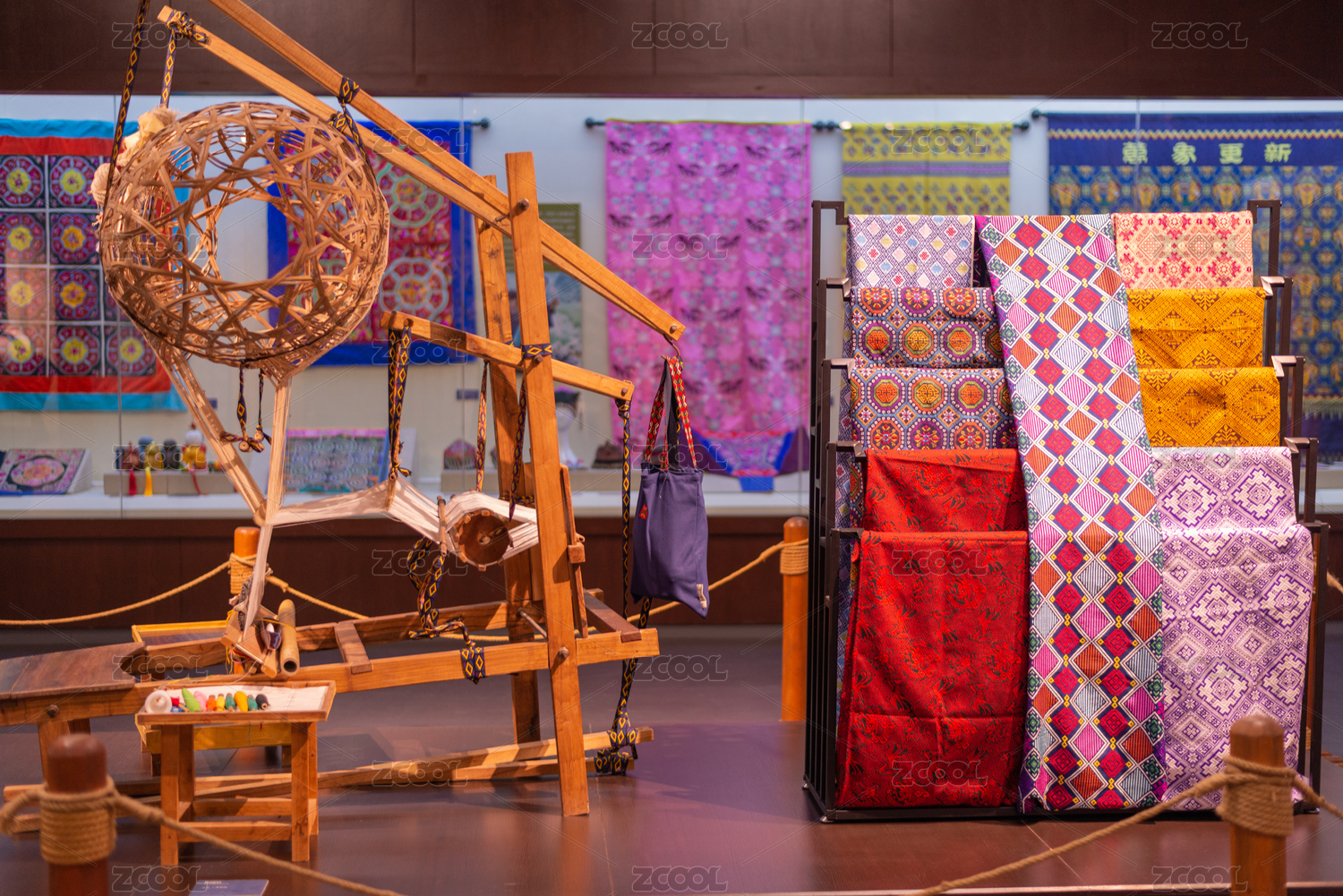 廣西民族博物館中的少數(shù)民族服飾及織布機
