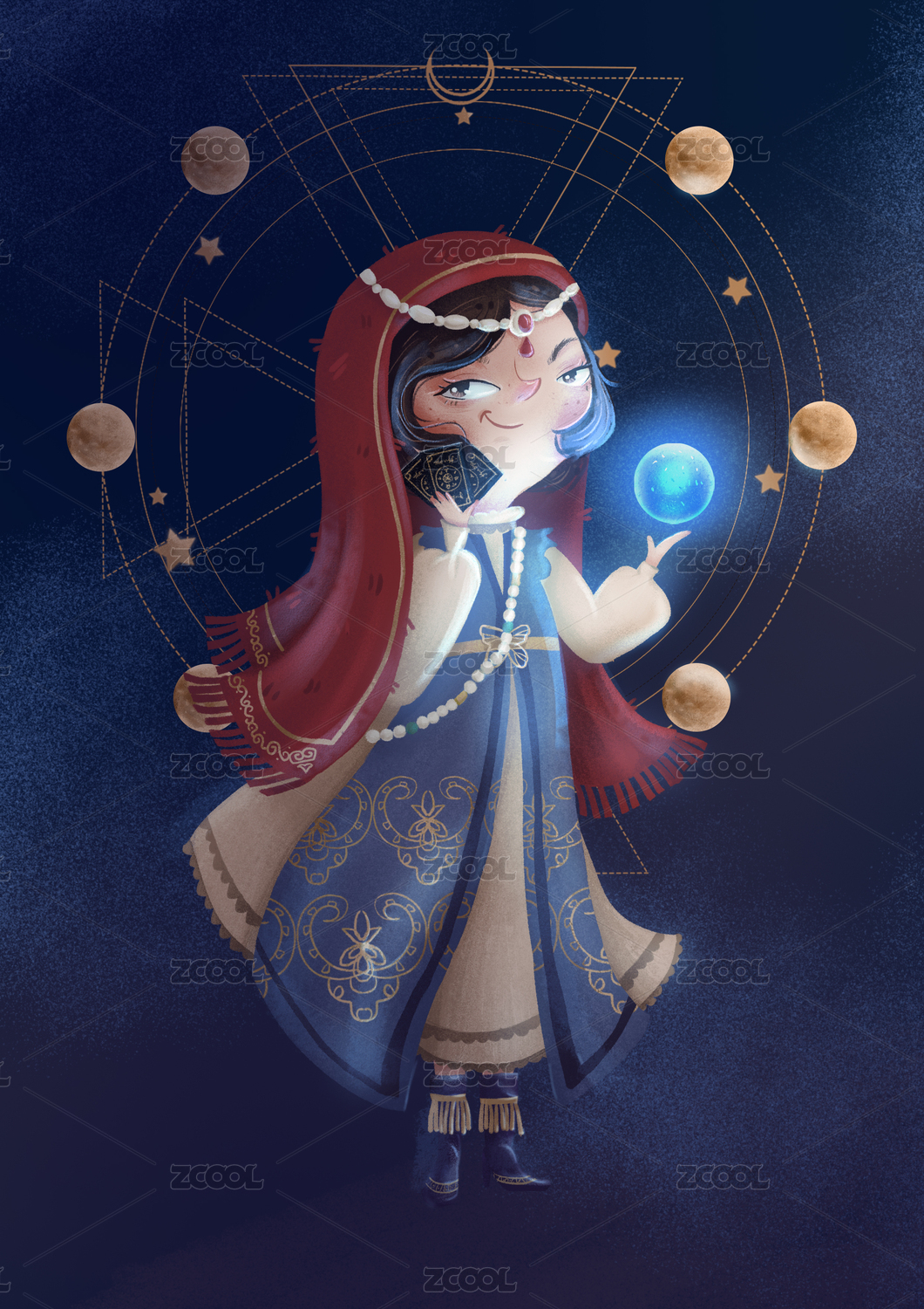 國潮卡通可愛少數(shù)民族鄂倫春族少女