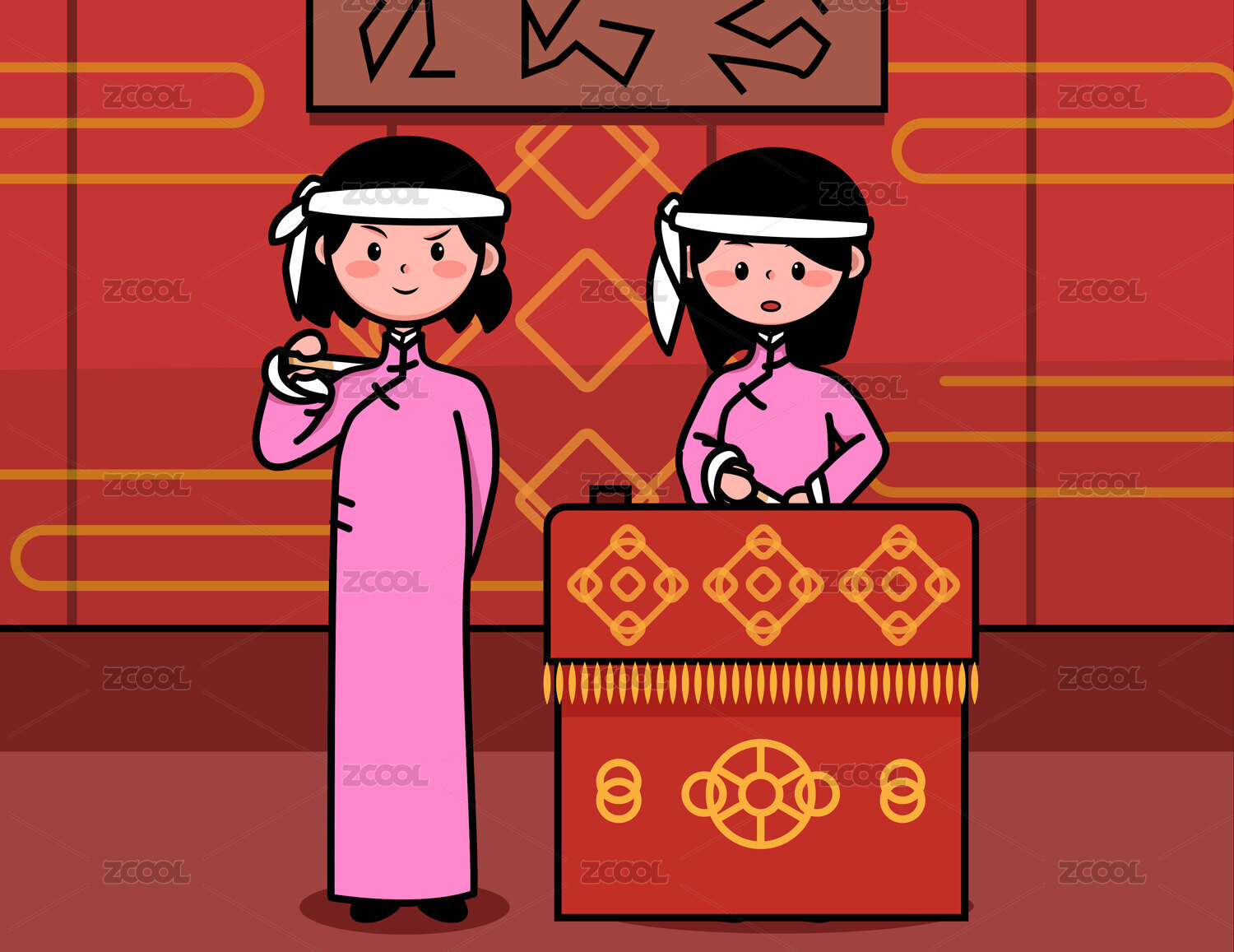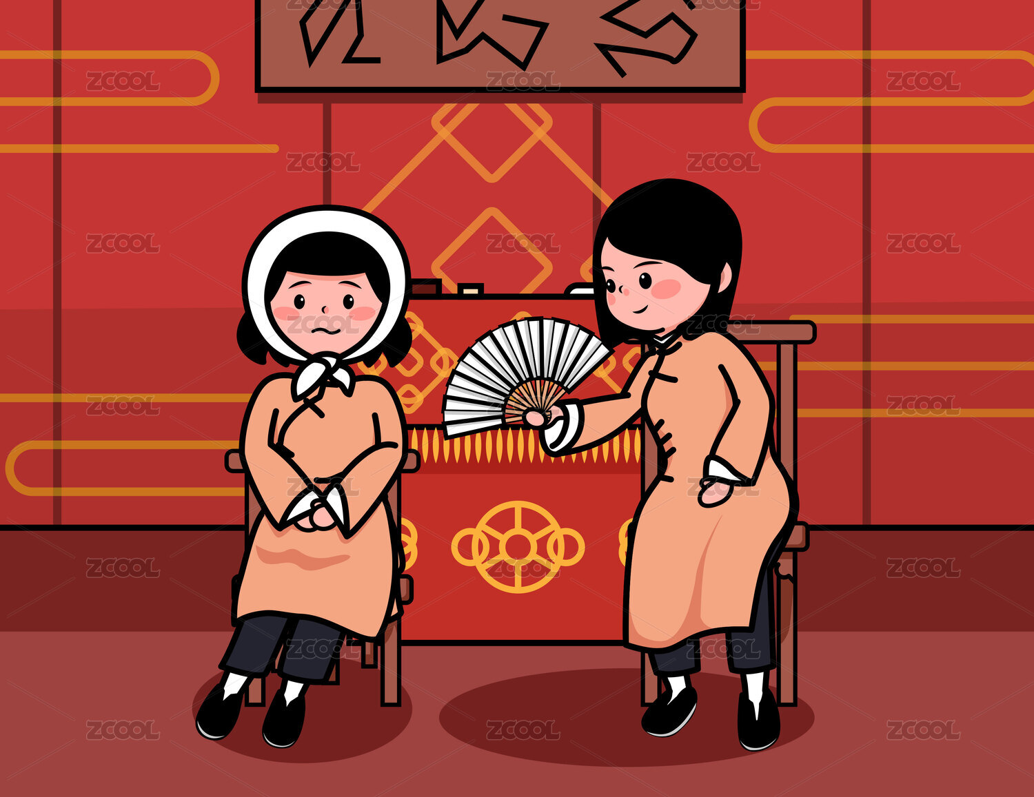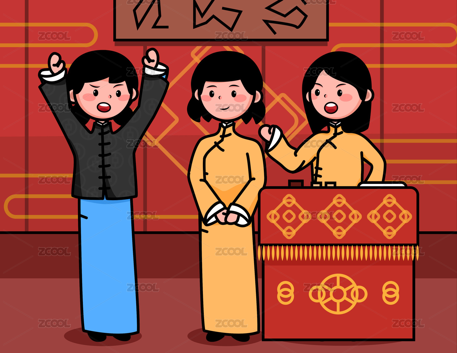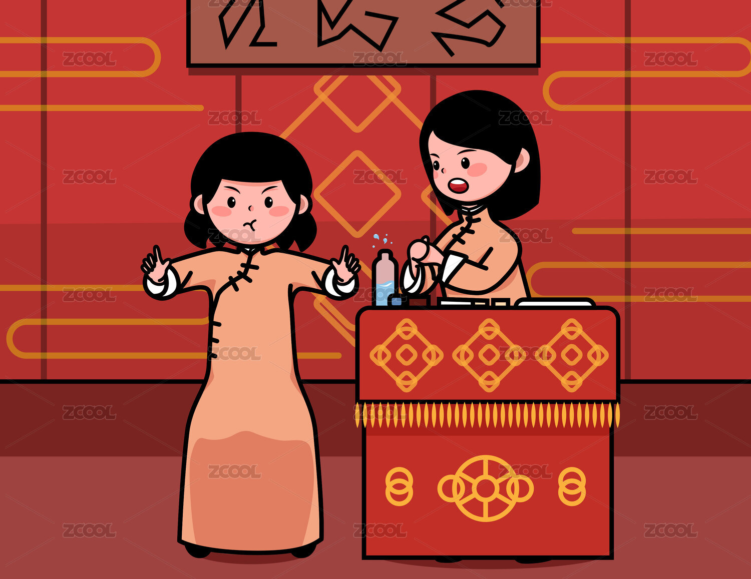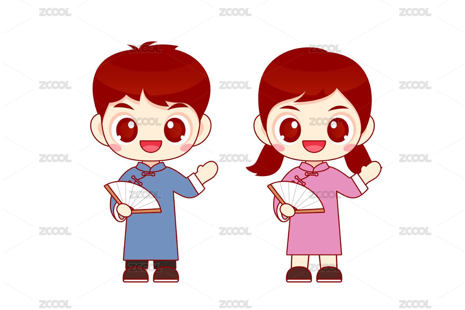 卡通長衫旗袍人物