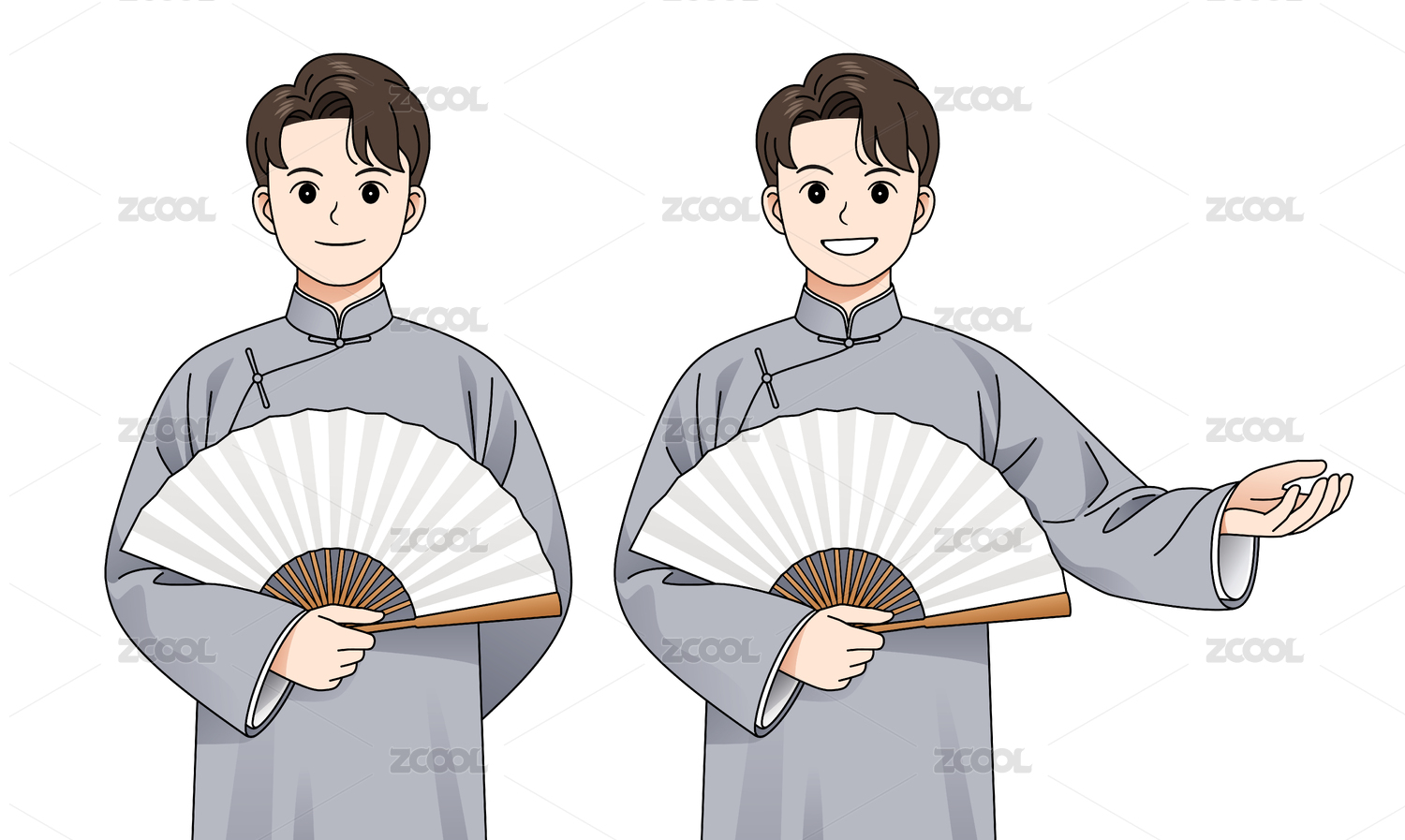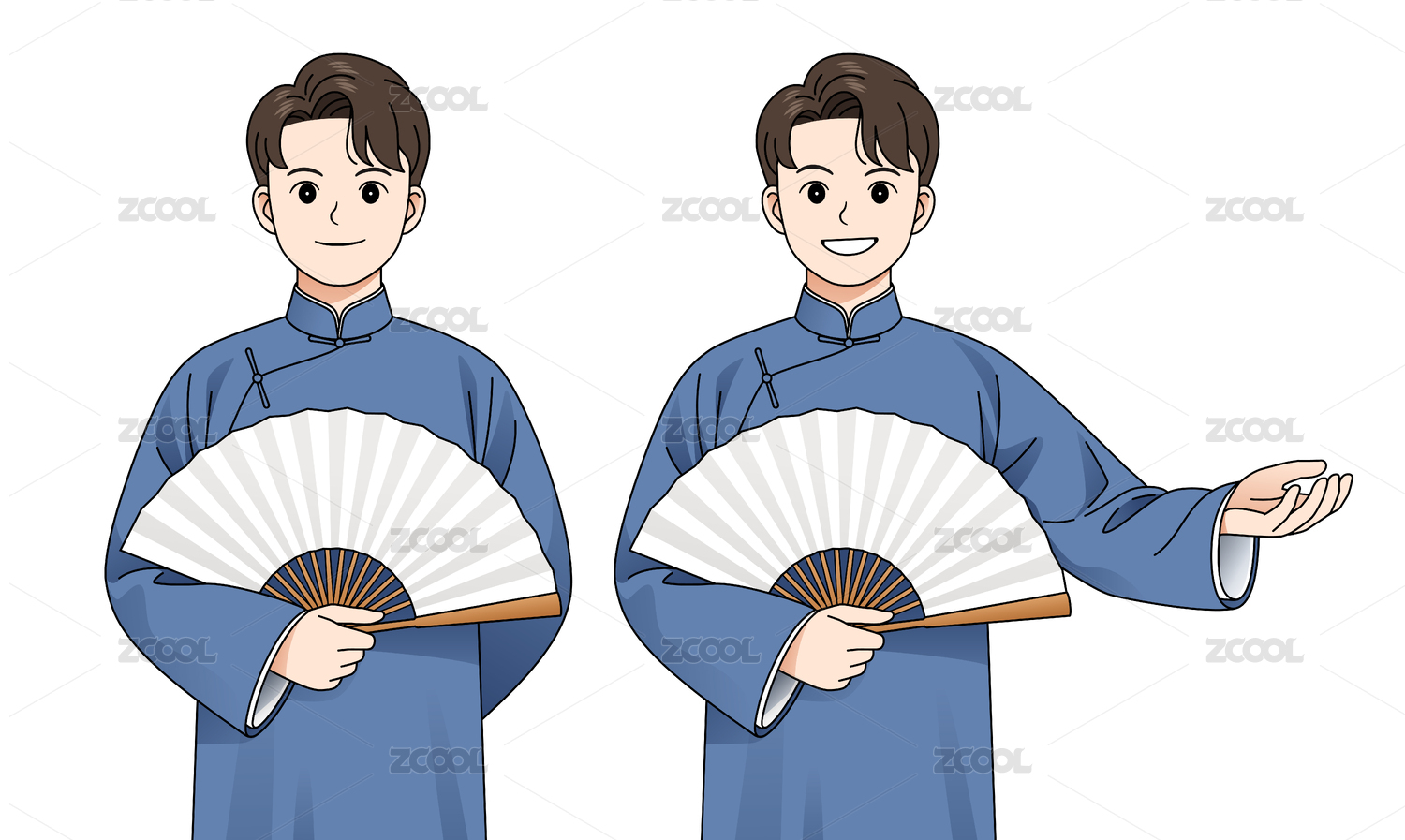 民國服裝長袍馬褂相聲演員全身矢量圖