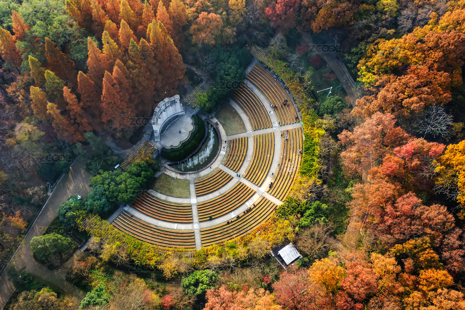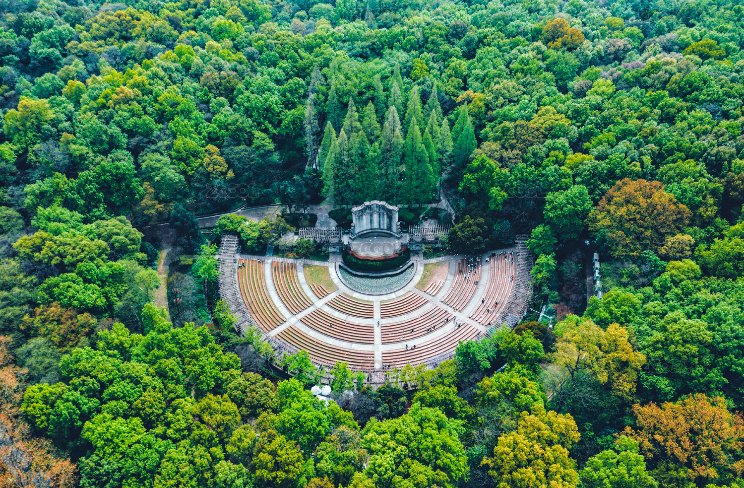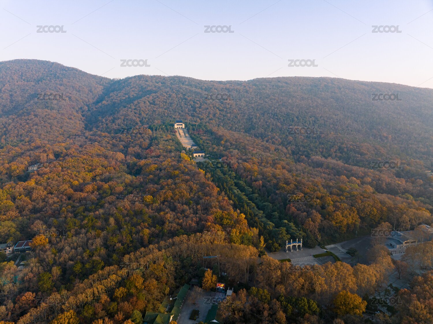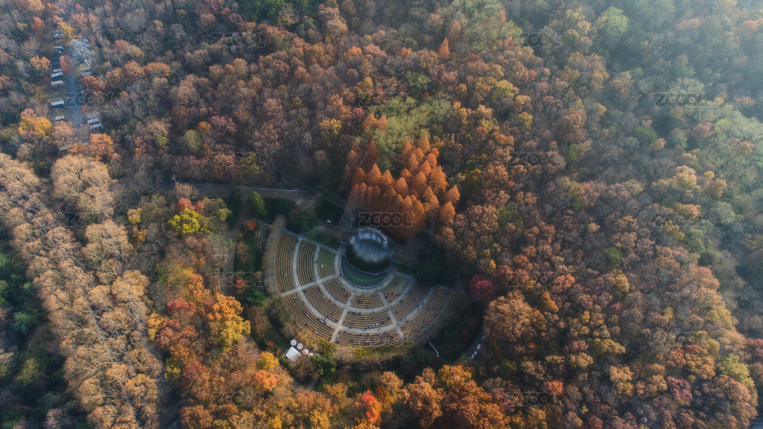 江蘇南京中山陵靈山風(fēng)景區(qū)音樂臺秋色航拍