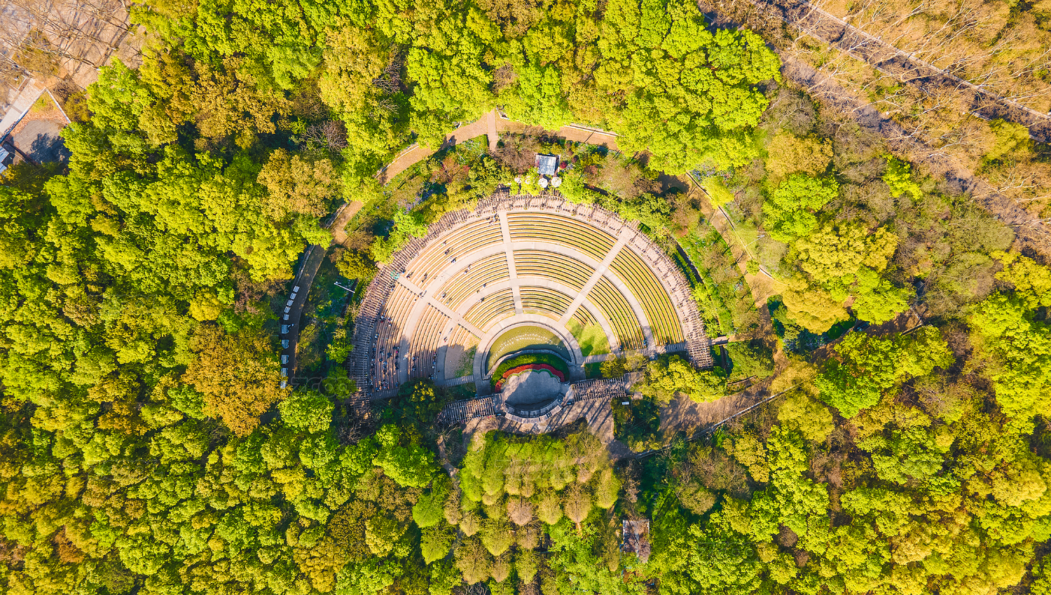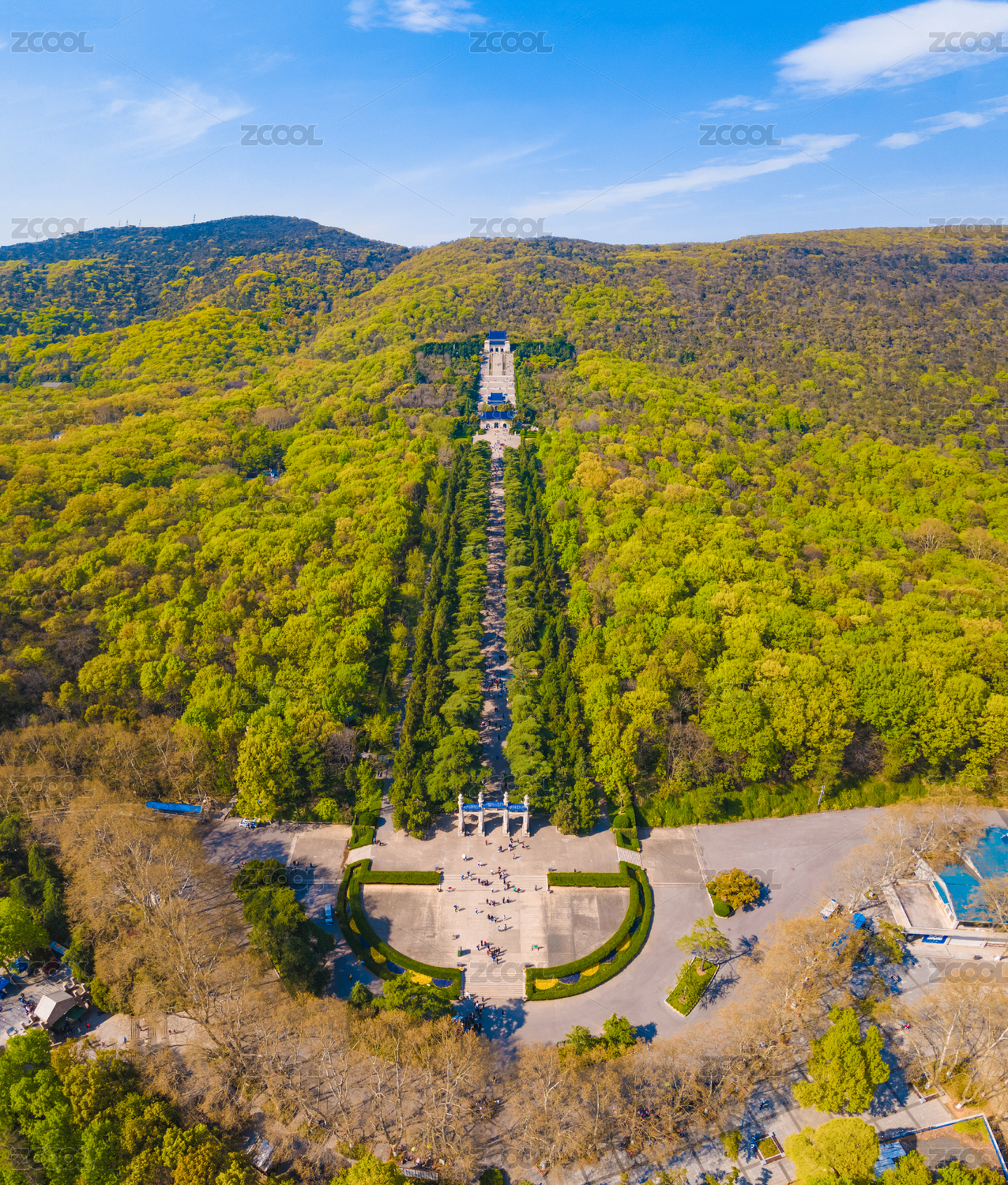 航拍春天的江蘇省南京中山陵景區(qū)與音樂臺