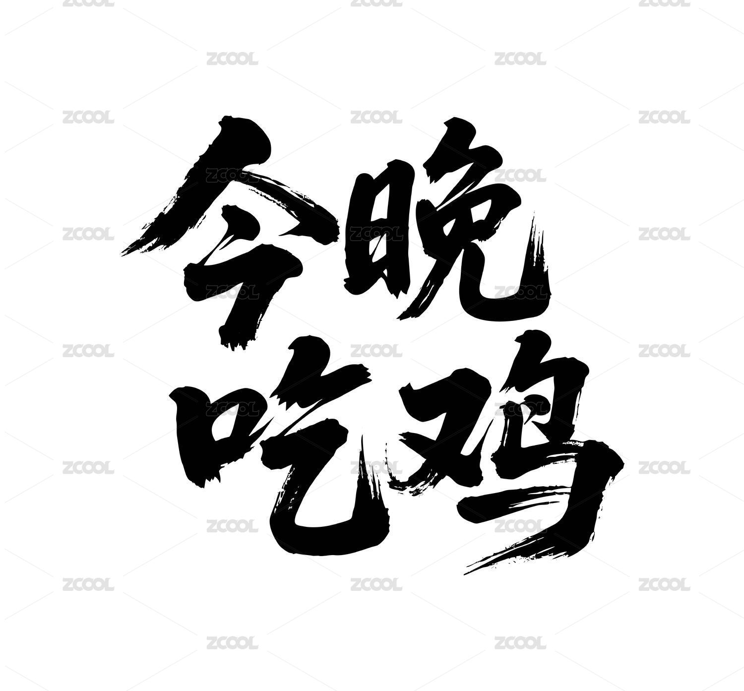 今晚吃雞矢量書法手寫毛筆字